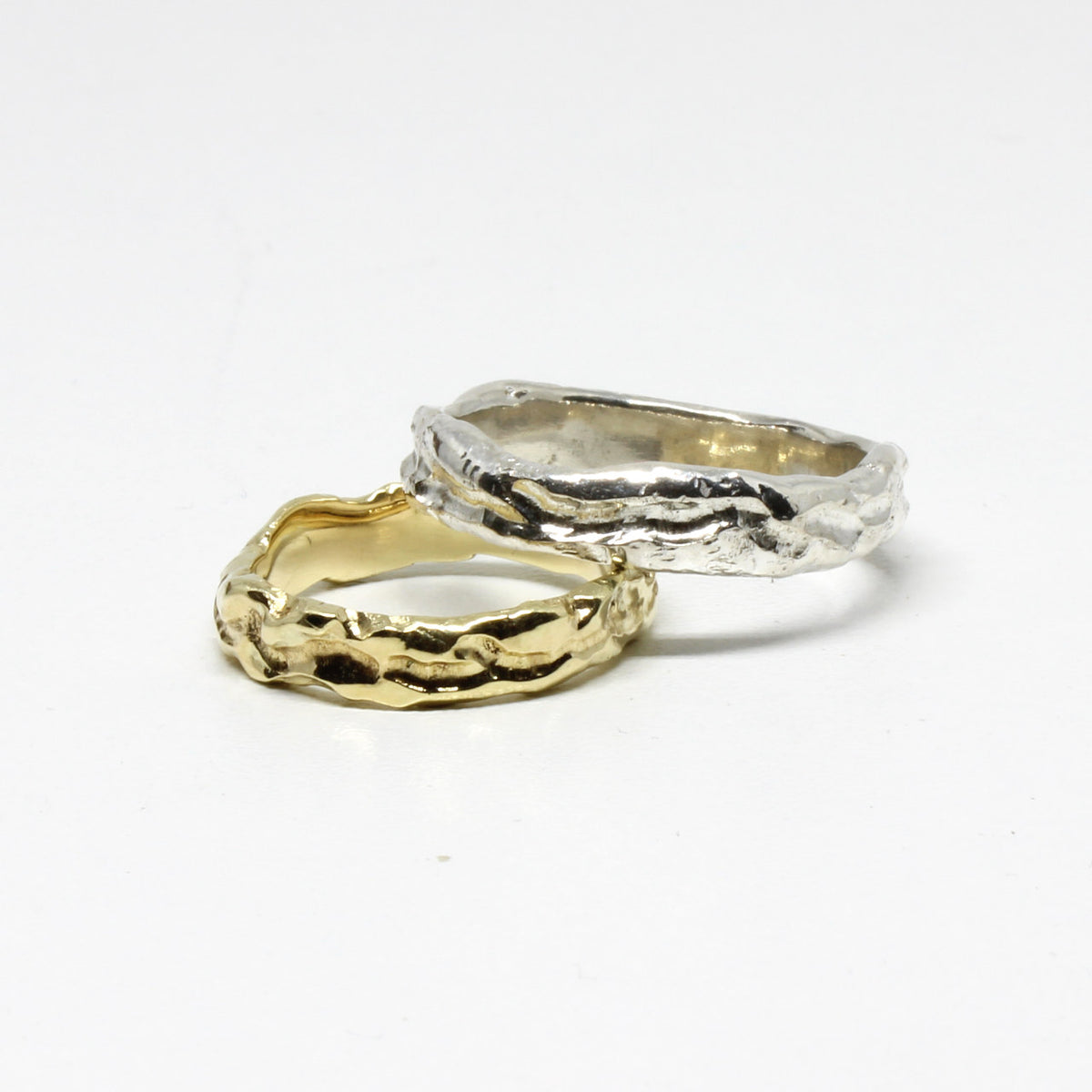 Trauringe Handarbeit Silber und 333 Gelbgold