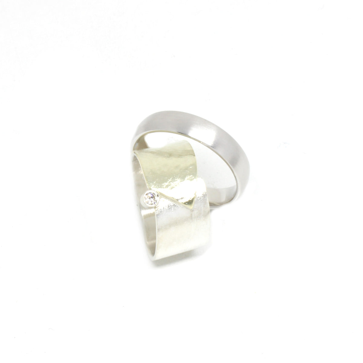 Der Damenring ist ca. 10 mm breit und hat einen kleinen Brillanten von 0,05 ct champ. Brillant