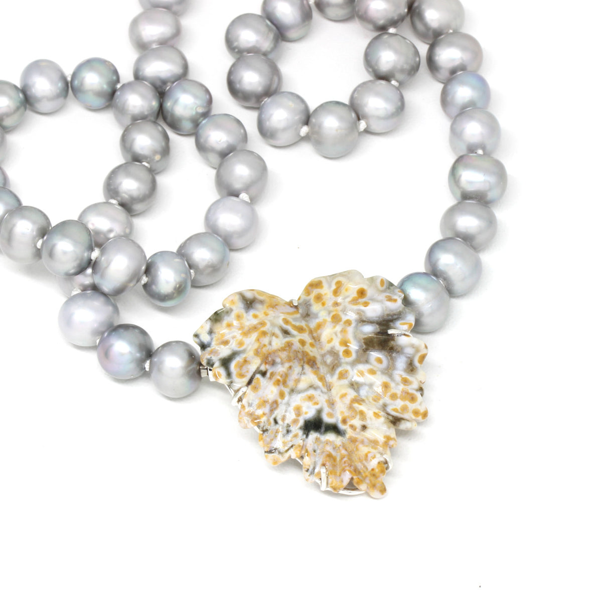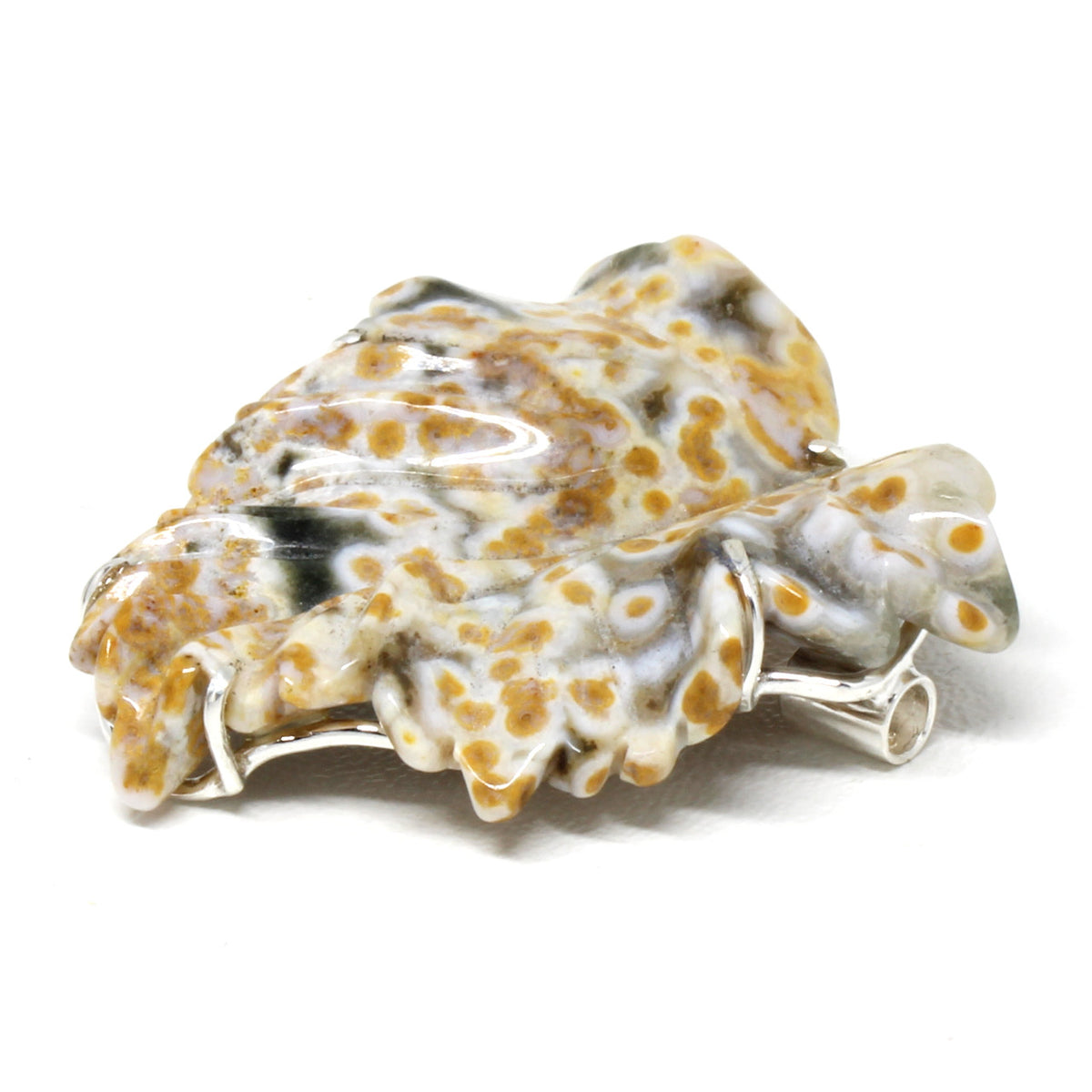 Dieses spektakuläre Blatt ist ein Jaspis. Diese einmalige Wechselschließe ist von uns in 925er Sterlingsilber eingefasst. Der warme Farbton mit seiner Maserung wirkt wie ein echtes Blatt.