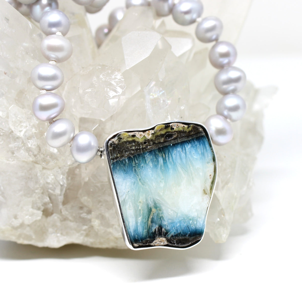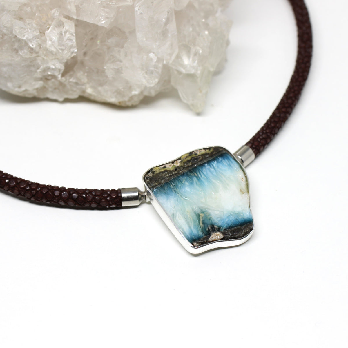 Du fragst dich sicher was es mit dem Namen Blue Ice auf sich hat. Blue Ice entstand als unbeabsichtigtes Nebenprodukt eines industriellen Prozesses oder Schmelzvorgangs und hat eine Härte ähnlich eines Saphirs. Die faszinierende Farbe macht es zu einem echten Eyecatcher. So konnten wir es uns nicht nehmen lassen daraus ein Schmuckstück zu fertigen. Wir haben den Blue Ice in 925er Sterlingsilber eingefasst.