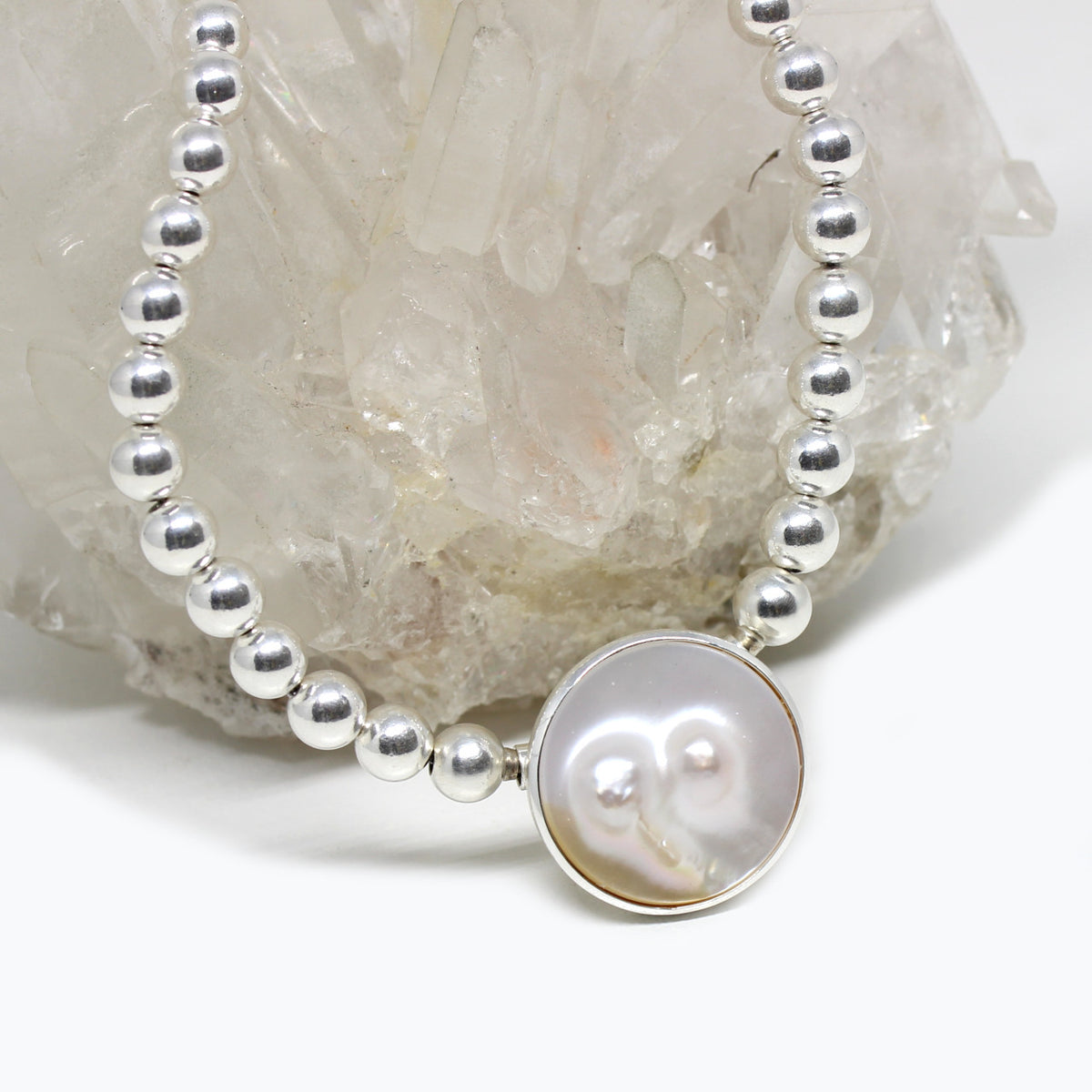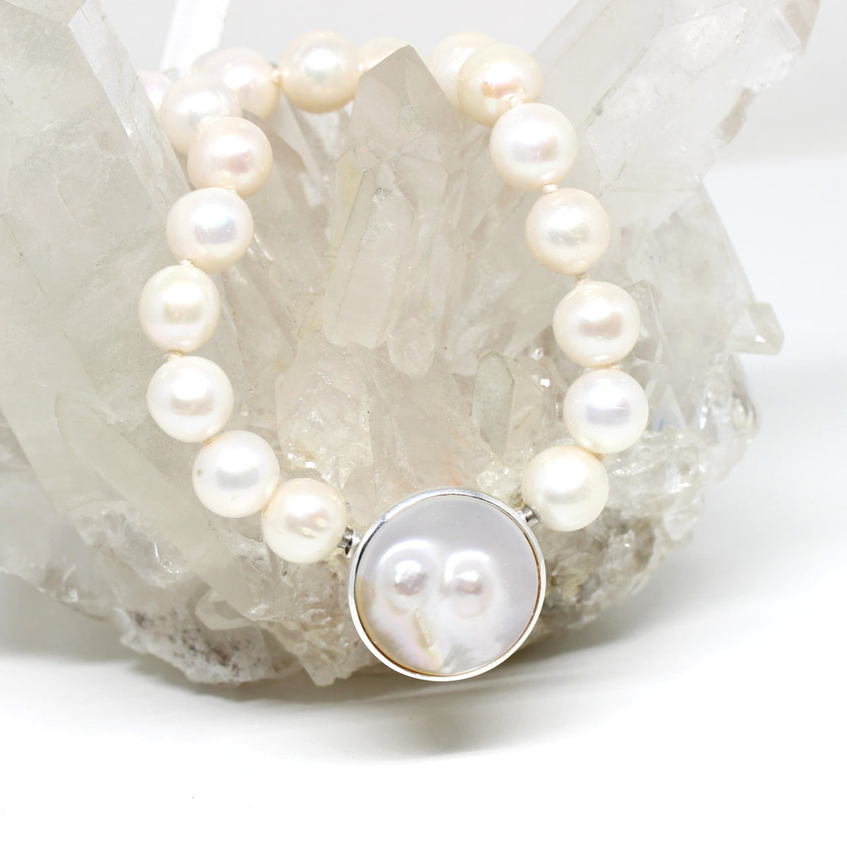 Tolles Schmuckstück das zu allen Outfits perfekt getragen werden kann. Die Mabeperle ist generell ein sehr beliebtes Schmuckelement. Wir haben die Schließe schlicht gehalten und aus 925er Sterlingsilber hergestellt.