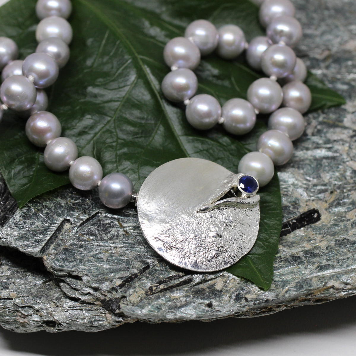 Dieses gestalterische Meisterwerk wurde in unserer Goldschmiede hergestellt. Unsere eigene Linie an Schmuckstücken hebt sich der Standartware ab und zeigt sich nicht nur in Kreativität sondern auch in höchster Verarbeitungsqualität. Jedes unserer Schmuckstücke ist von Hand hergestellt und hat optisch immer dezente Unterschiede. Die vorgeführte Wechselschließe ist eines unserer eigenen Produkte und ist aus 925er Sterlingsilber geschmiedet. Sie trägt unterschiedliche Oberflächenstrukturen und besticht mit einem eindrucksvollen Saphir von 0,7 ct.