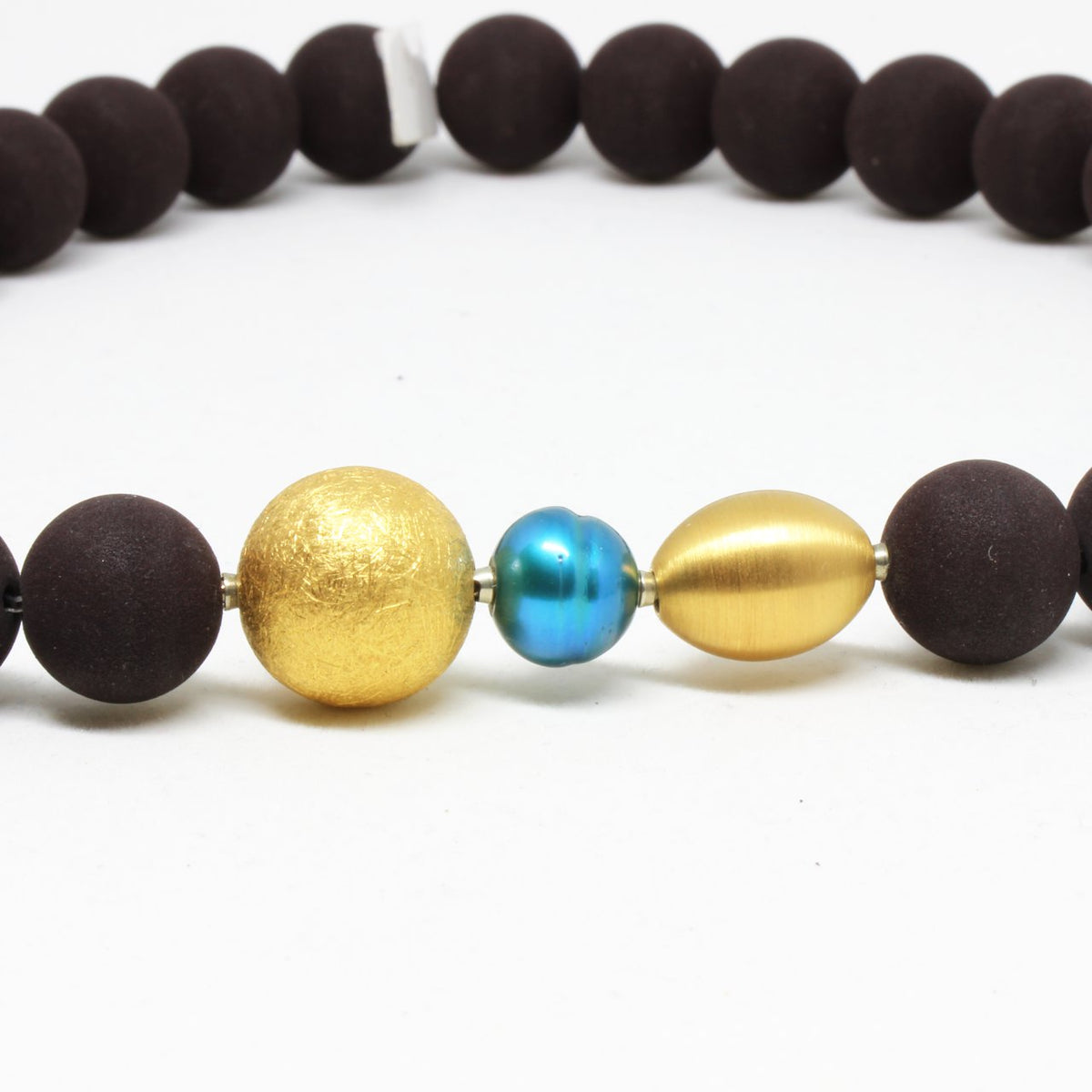 Trage Gold! Gerade zu farbigen Ketten wirkt das Edelmetall sehr wertvoll und elegant. Die Oberfläche der Kugel ist eismatt, was das Erscheinungsbild noch graziöser wirken lässt. Wir haben diese Kugel in unserer Goldschmiede hergestellt. Setzen Sie passende Akzente mit diesem einmaligen Wechselverschluss aus 333er Gelbgold!