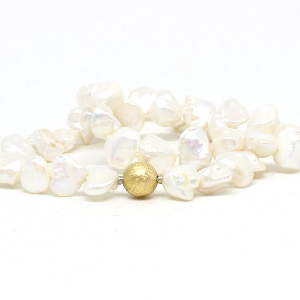Kugelschließen sollten in keinem Wechselsortiment fehlen. Sie passen zu jeder Wechselkette und setzen den passenden Akzent. Die eismatte Optik wirkt handwerklich und besonders. Die Schließe ist aus 925er Sterlingsilber hergestellt und vergoldet. Möchte man dieses schöne Stück einmal vielfältiger tragen, eignet sich ein Adapter hervorragend dazu.