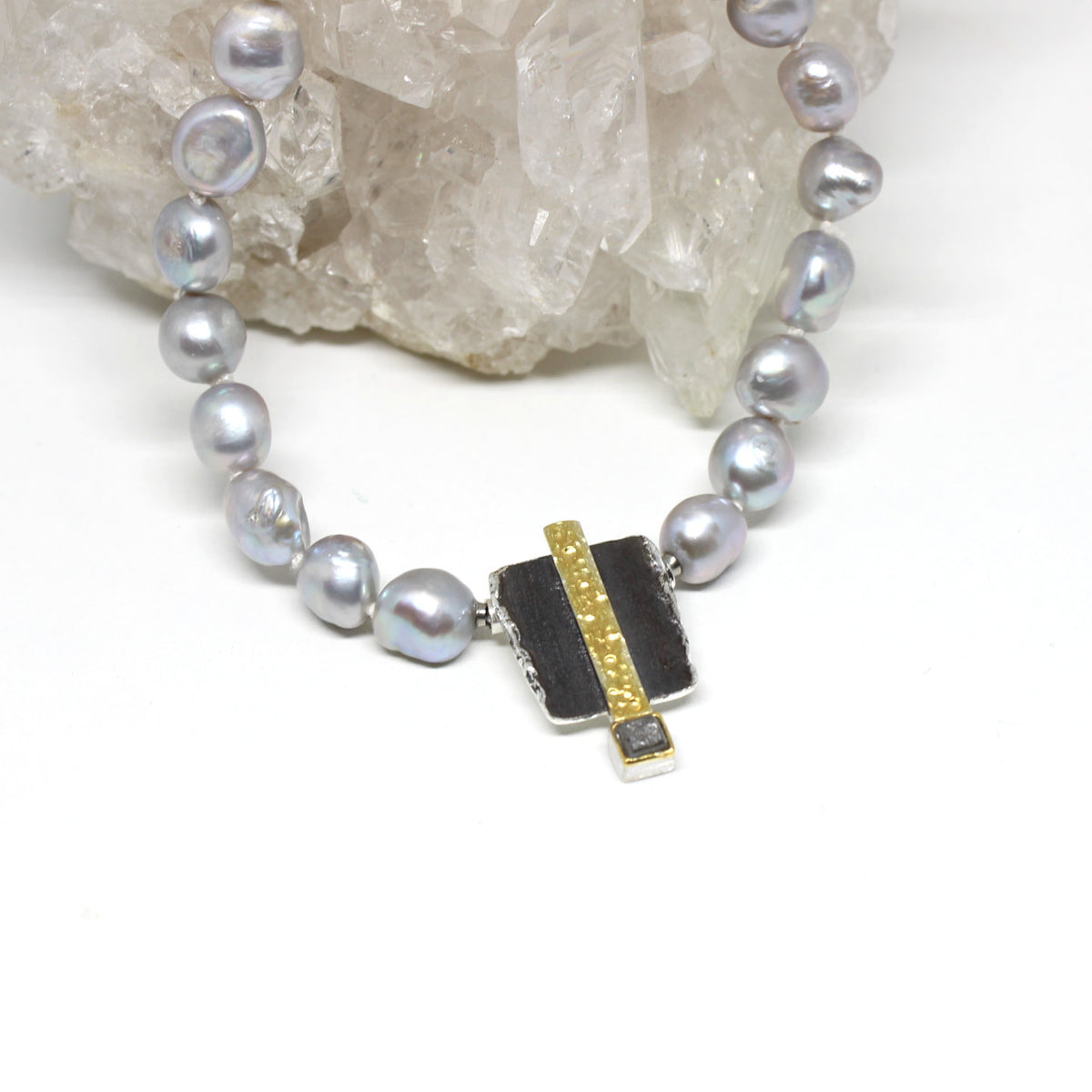 Diese neue Wechselschließe kommt gerade aus der Werkstatt! Wir waren mutig und haben hier etwas neues ausprobiert. Die Wechselschließe haben wir aus 925er Sterlingsilber geschmiedet, uns jedoch entschieden Teile des Schmuckstückes zu schwärzen und zu vergolden. Somit bekommen wir eine ganz neue Optik in unserem Sortiment. Bei dieser Wechselschließe haben wir einen Rohdiamanten eingearbeitet.