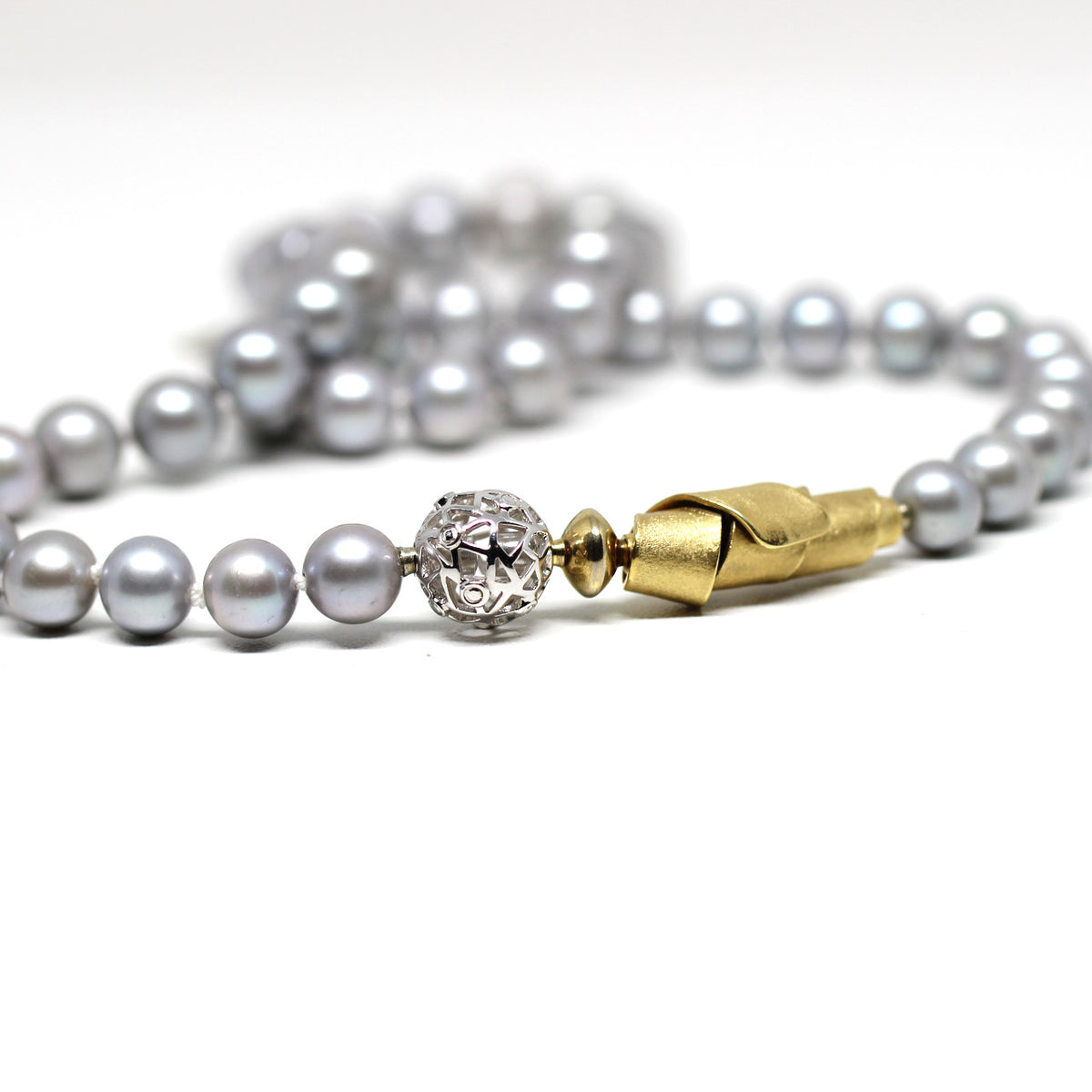 Diese geschmackvolle Wechselschließe haben wir in unserer Goldschmiede hergestellt. Sie ist aus feinem 333er Gelbgold geschmiedet und hat eine seidene Oberflächenstruktur. Neben der Oberfläche ist auch die Form sehr ansprechend, da sie jede Wechselkette optisch aufwertet und zusätzlich in Kombination mit Adaptern heraussticht. Vor allem mit dunklen Wechselketten kann man raffinierte Kontraste zaubern.