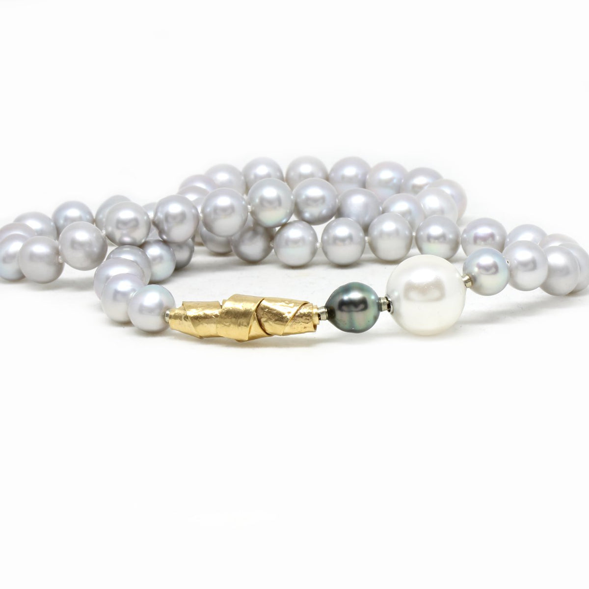 Diese legere Wechselschließe haben wir in unserer Goldschmiede hergestellt. Sie ist aus 333er Gelbgold und mit einer seidenen Oberflächenstruktur bearbeitet. Neben der Struktur ist auch die Form sehr ansprechend, da sie jede Wechselkette optisch aufwertet und zusätzlich in Kombination mit Adaptern heraussticht. Vor allem mit dunklen Wechselketten kann man raffinierte Kontraste zaubern.