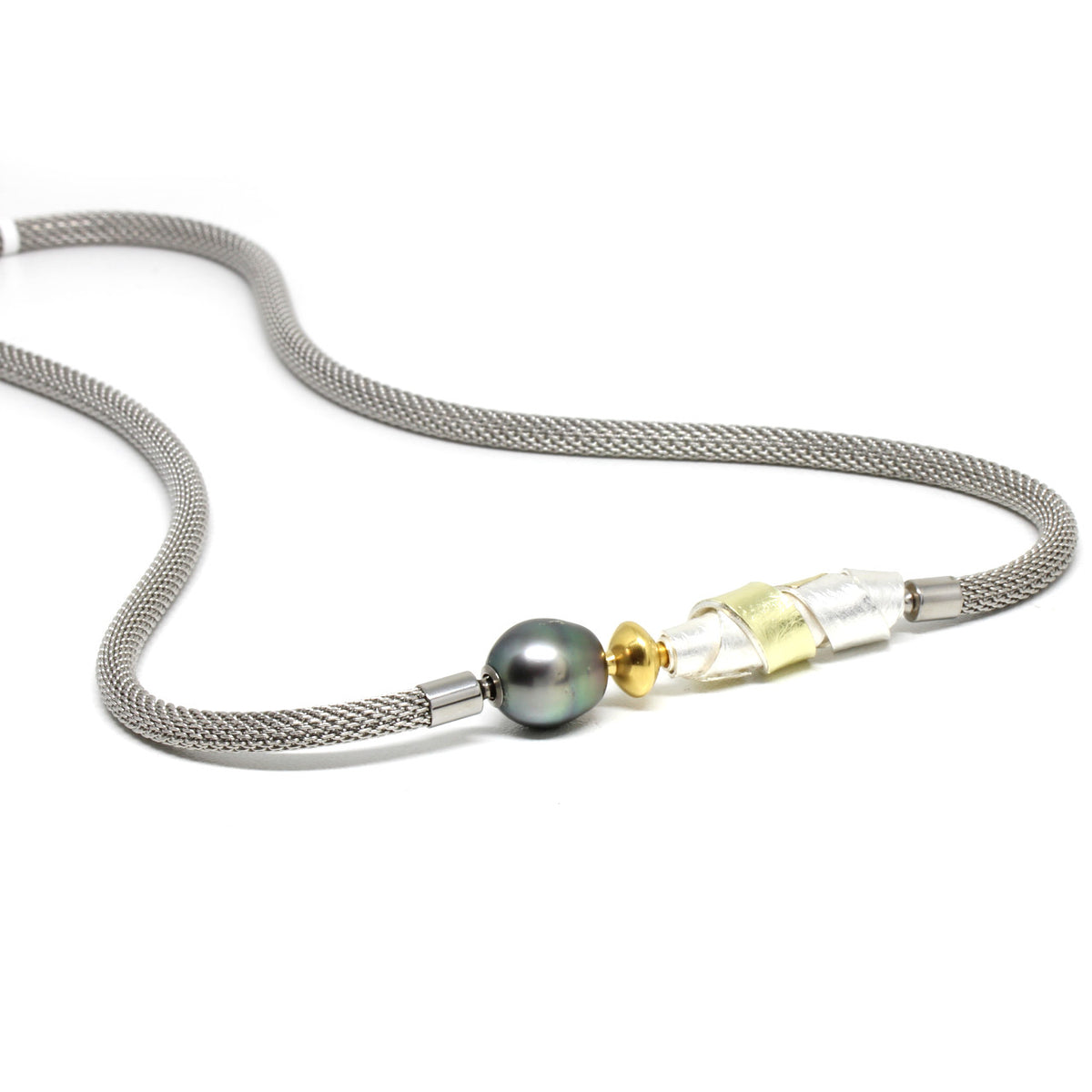 Diese hochwertige Wechselschließe haben wir in unserer eigenen Werkstatt hergestellt. Sie ist aus 925er Sterlingsilber und teilweise aus 750er Gelbgold massiv gearbeitet. Neben der edlen Struktur ist auch die Form sehr ansprechend, da sie jede Wechselkette optisch aufwertet und zusätzlich in Kombination mit Adaptern heraussticht.