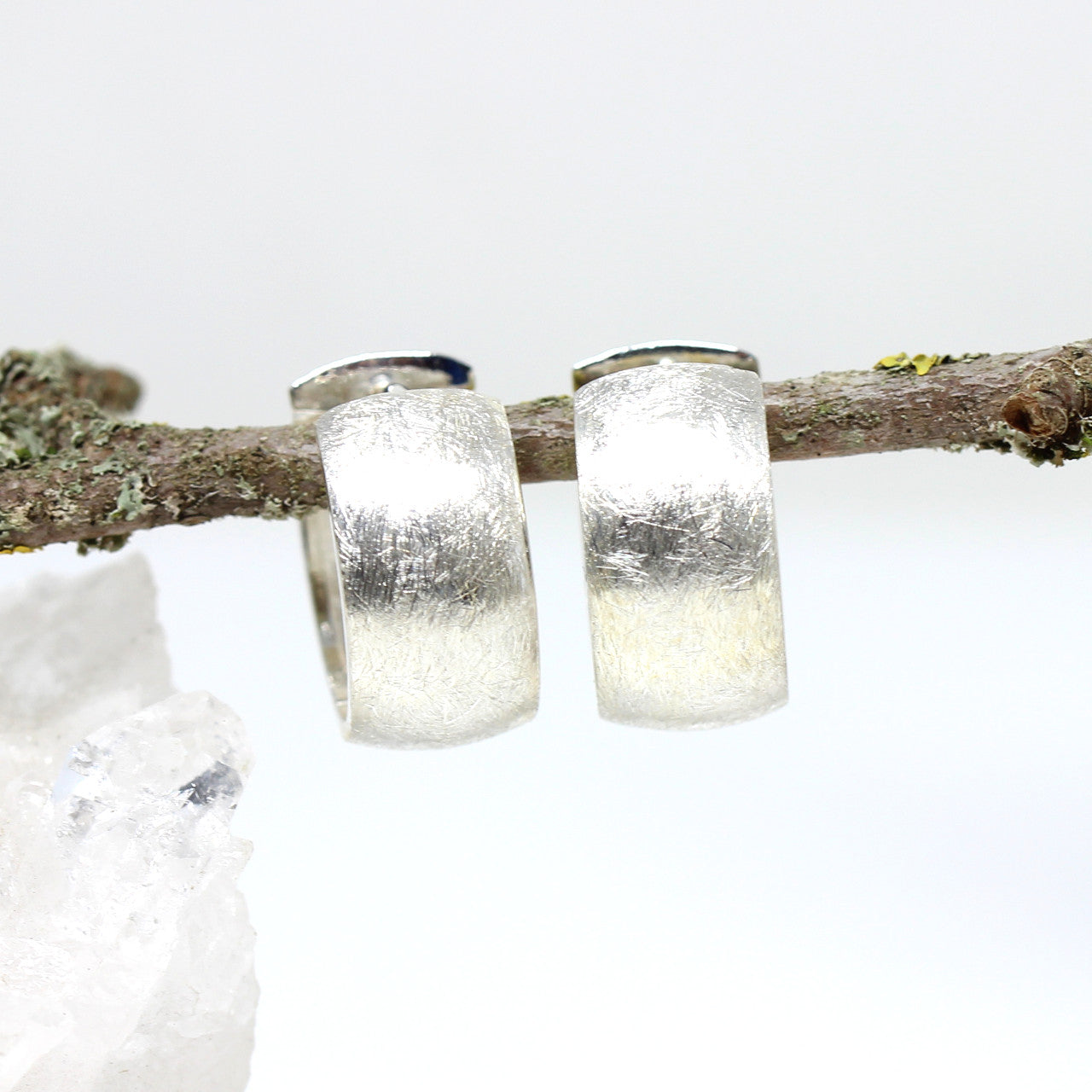 Diese tollen Creolen sind aus 925er Sterlingsilber. Die Oberfläche der Ohrringe ist eismattiert. Durch das Scharniergelenk und den Clickverschluß sind sie leicht zu bedienen.