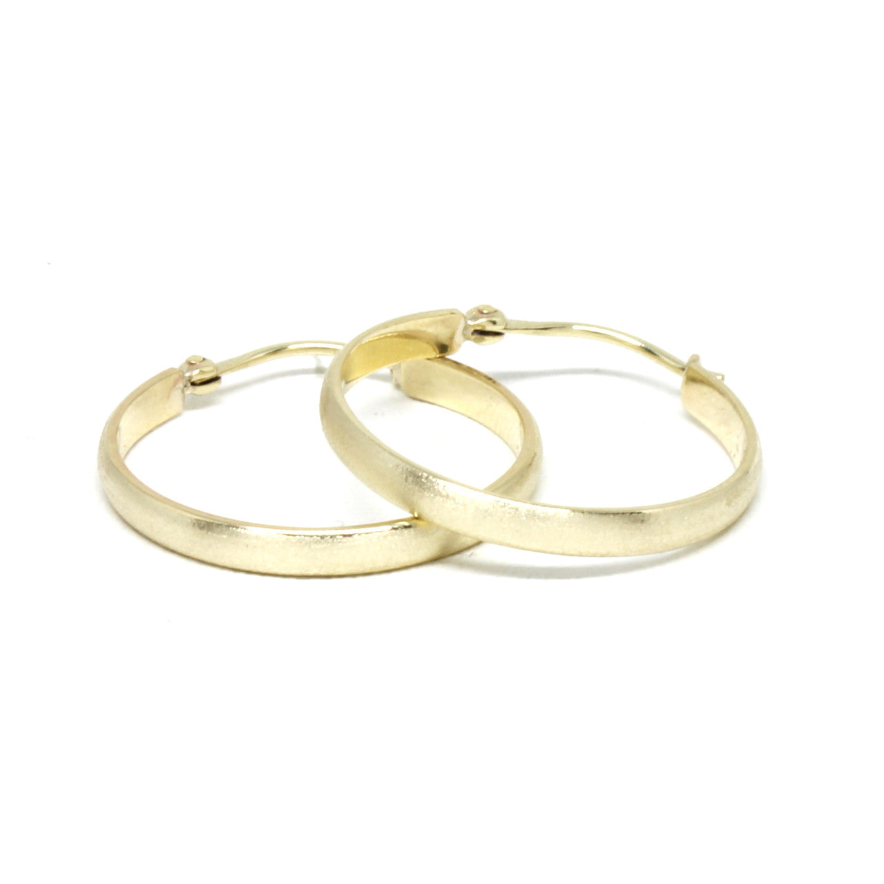 Diese klassischen Creolen haben wir in unserer Werkstatt hergestellt und mattiert. Die Goldschmiedearbeit ist aus 333er oder 585er Gelbgold und erhältlich. Wir können dieses Design in jedem Durchmesser anfertigen. Kontaktieren Sie uns hierzu gerne per E-Mail.