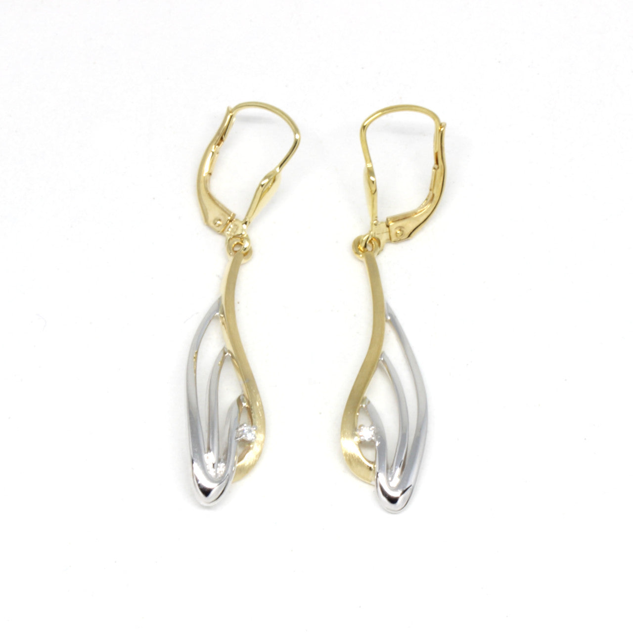 Diese individuellen Ohrhänger sind aus 333er Gelb- und Weißgold gefertigt. Das tolle dieses Ohrschmucks ist die bicolor Optik. Diese verwandelt das Schmuckstück in einen vielseitigen Begleiter der zu allem passt. Die Verschlüsse der Ohrhänger sind mit Bügelverschluss den man verschließen kann.