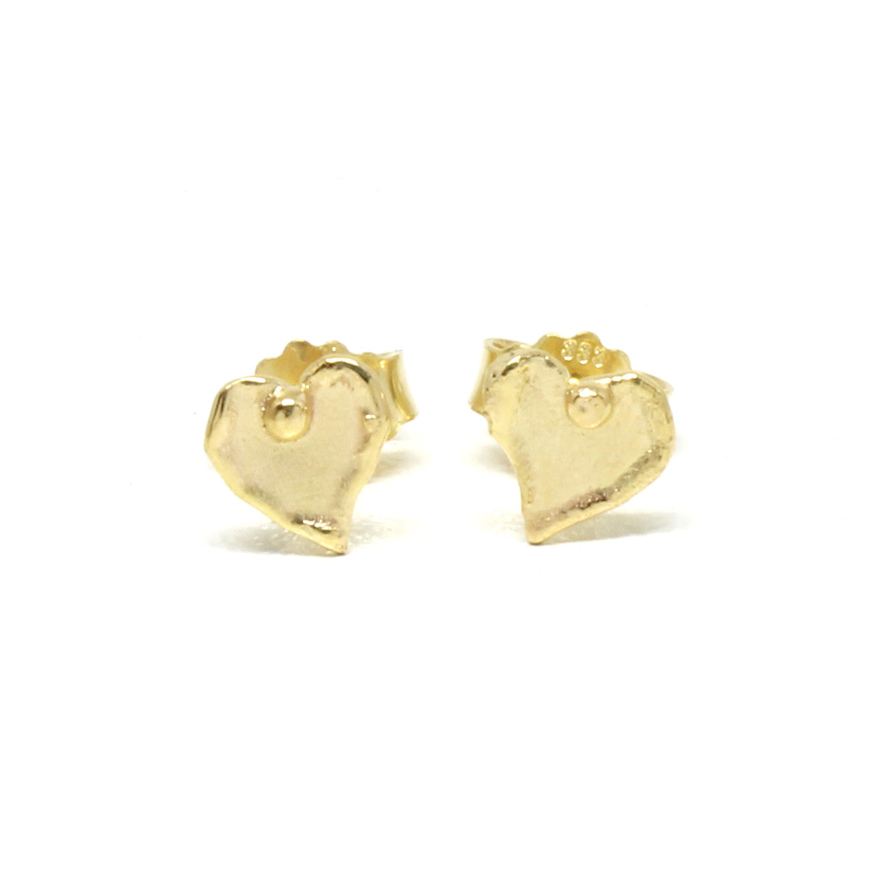 Diese bezaubernden Ohrstecker sind aus 333er Gelbgold angefertigt. Wir haben sie selbst entworfen und in unserer kleinen Werkstatt hergestellt. Sie haben eine feine Herzform und mit unserer speziellen Oberflächenstruktur versehen. Sie haben auch eine ideale Größe für Kinder.