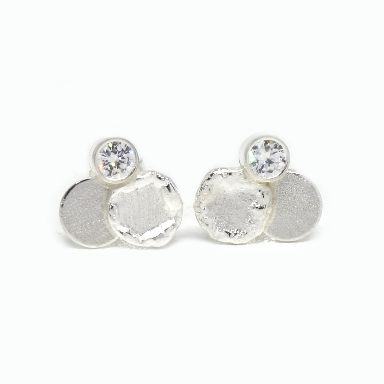 Diese handgefertigten Ohrstecker aus 925er Sterlingsilber sind ein Design von Schmuckwiedu. Wir haben sie in unserer Werkstatt geschmiedet. Die spezielle Struktur zeigt die Goldschmiedekunst und verwandelt den Ohrschmuck in ein echtes Kunstwerk. Ein strahlender Zirkonia verleiht den letzten Schliff.