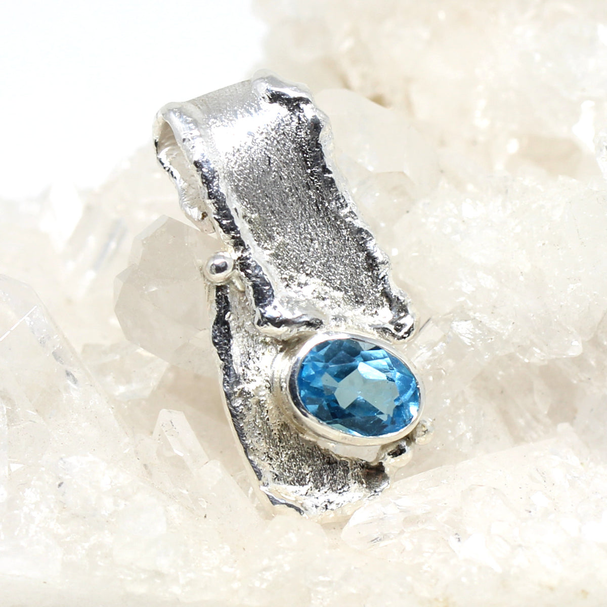 Silberanhänger Handarbeit mit Blautopas