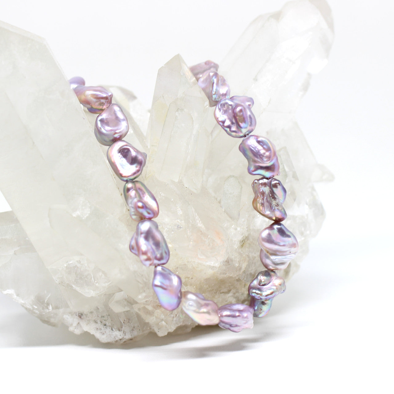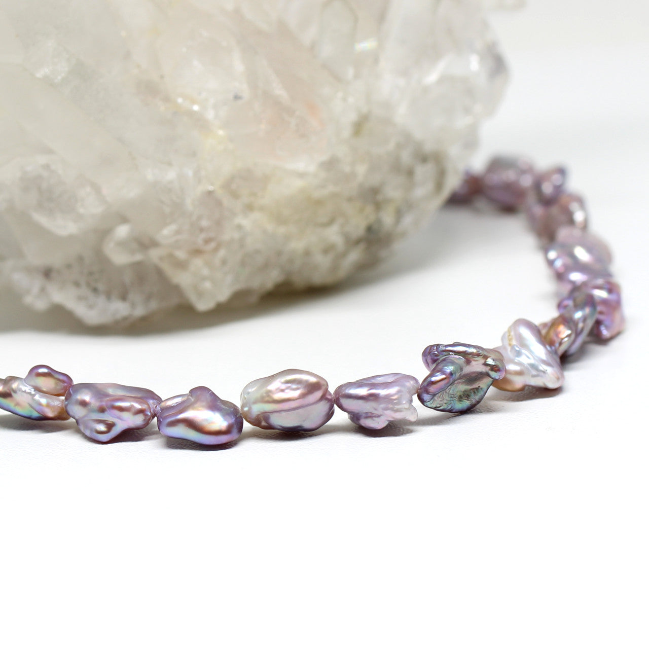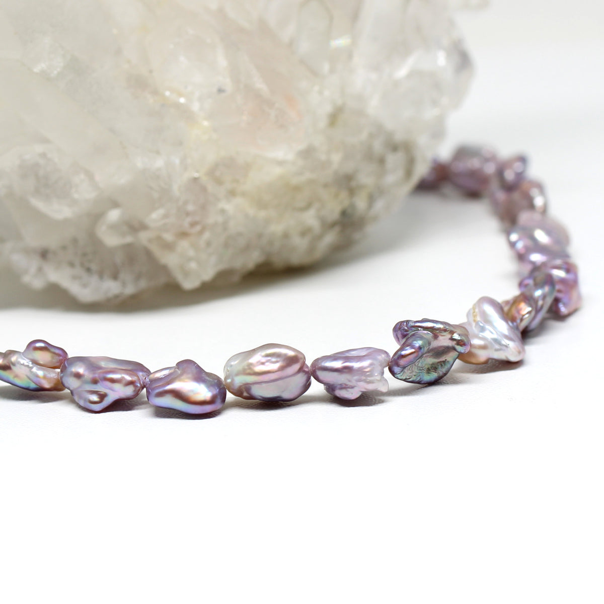 Diese außergewöhnliche Perlenkette besticht vor allem mit ihrer wahnsinnig schönen Farbe. Auch Größe und Form der Perlen sind perfekt. Es ist ein Schmuckstück das einem direkt ins Auge sticht und von dem man den Bick kaum abwenden kann. Der Lüster der Keshiperlen ist sehr schön und bringt die Haut zum strahlen. Man kann diese Wechselkette mit beinahe jeder Schließe kombinieren, doch vor allem Spielereien mit dem Adaptersystem wirken Ausdrucksstark in der Kette.