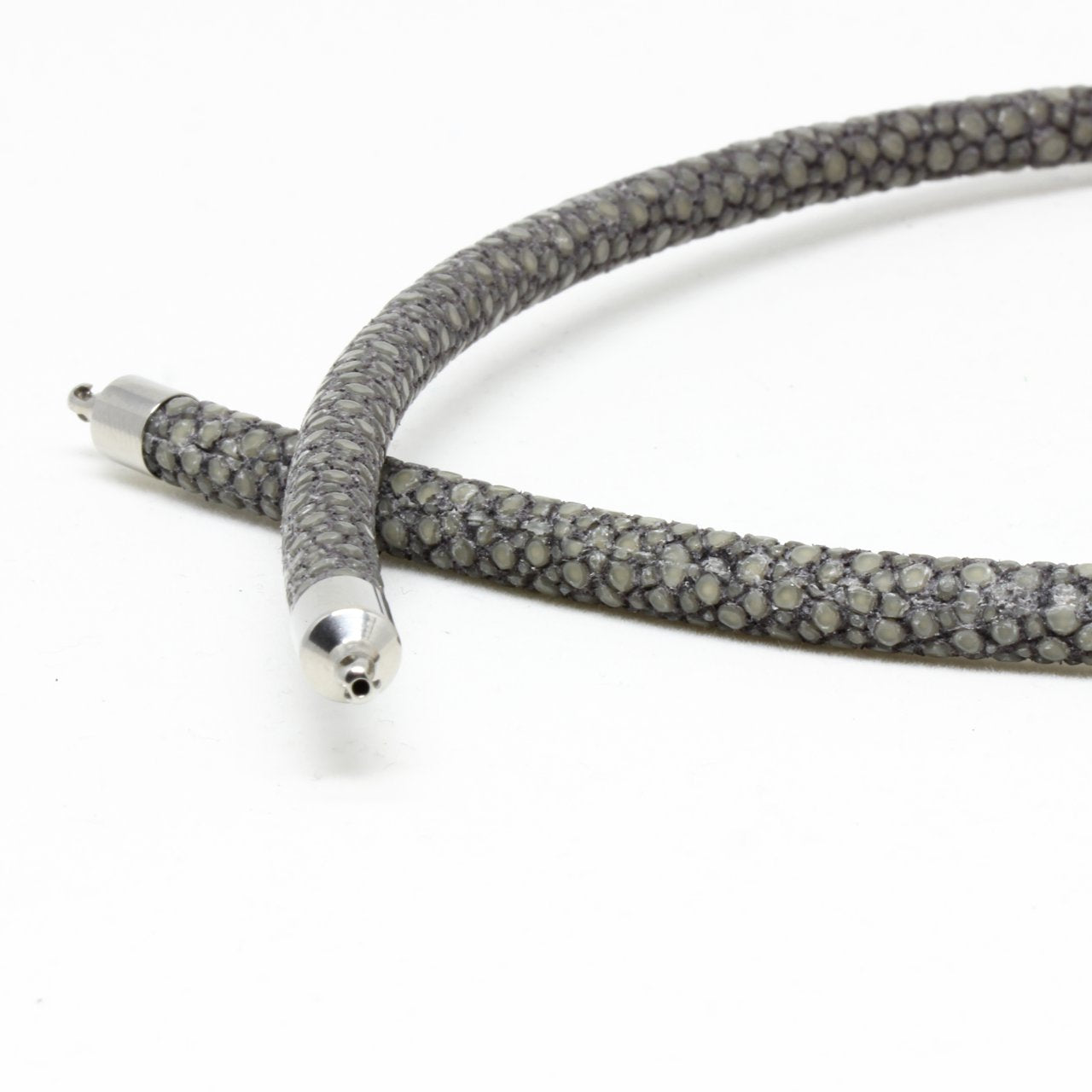 Das grau des Rochenleders passt zu allen Farben und Formen der Wechselschließen. Es bietet noch mehr Vielfalt in der Welt des Wechselsystems. So ist es eine gelungene Abwechslung seine Schließen in einer andersfarbigen Kette in den Fokus zu stellen.