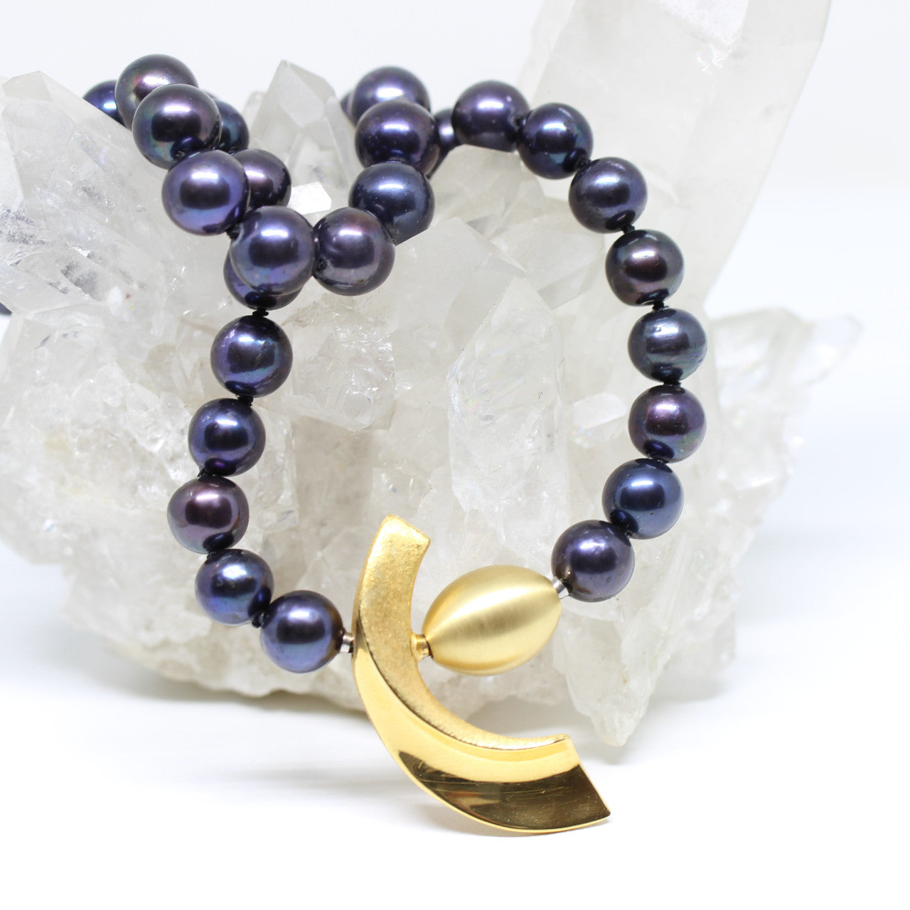 Diese wundervolle Wechselkette ist eine Augenweide. Die leuchtenden Süßwasserperlen ergänzen sich perfekt mit Silber- oder Goldverschlüssen. Zu diesen setzen sie den idealen Kontrast um diese hervor zu bringen. Die Perlen haben eine sehr gute Qualität und wurden in einem speziellen dunklen Ton gefärbt. Der Lüster dieser Kette ist sehr beeindruckend und elegant.