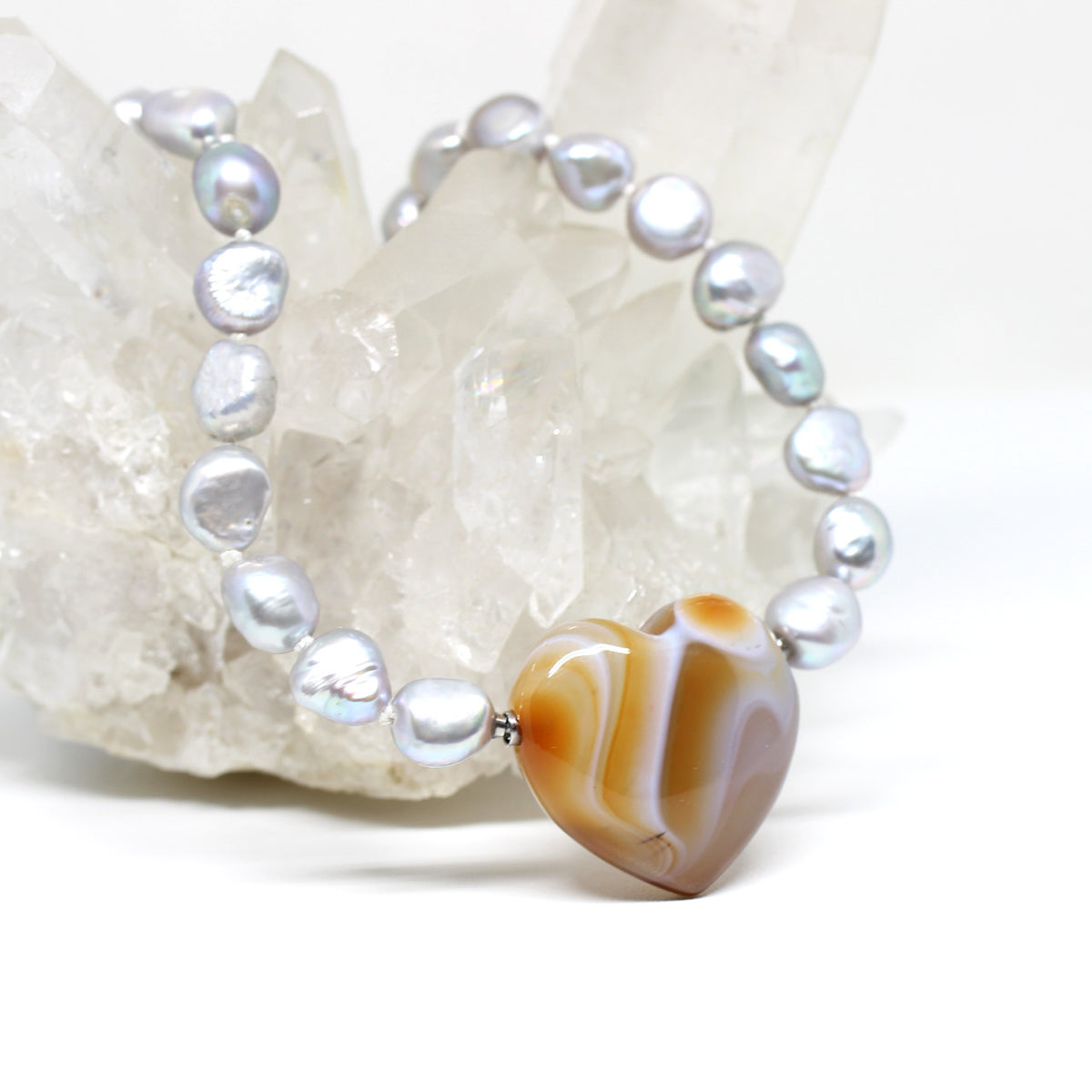 Der fabelhaft gemaßerte Achat lässt sich super zu allerlei Ketten mit Wechselsystem kombinieren. Mit seiner einzigartigen Farbgebung ist das Herz ein beeindruckendes Schmuckstück.