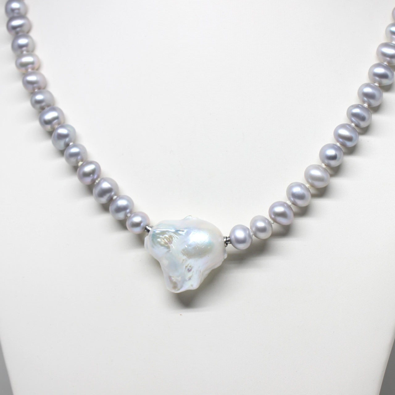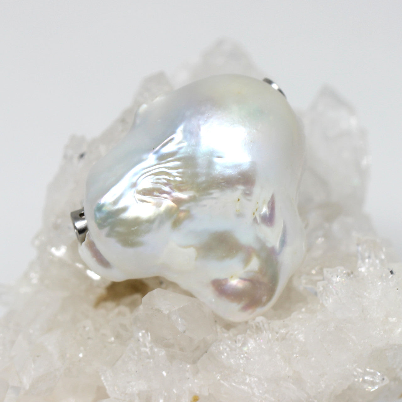 Diese weiße, schillernde Süßwasserperle ist außergewöhnlich in Ihrer Gestalt und Farbe. Ein Kunstwerk der Natur mit tollem Lüster. Ihre barocke Form sieht auch in einem Kautschuk getragen sehr schön und sportlich aus.