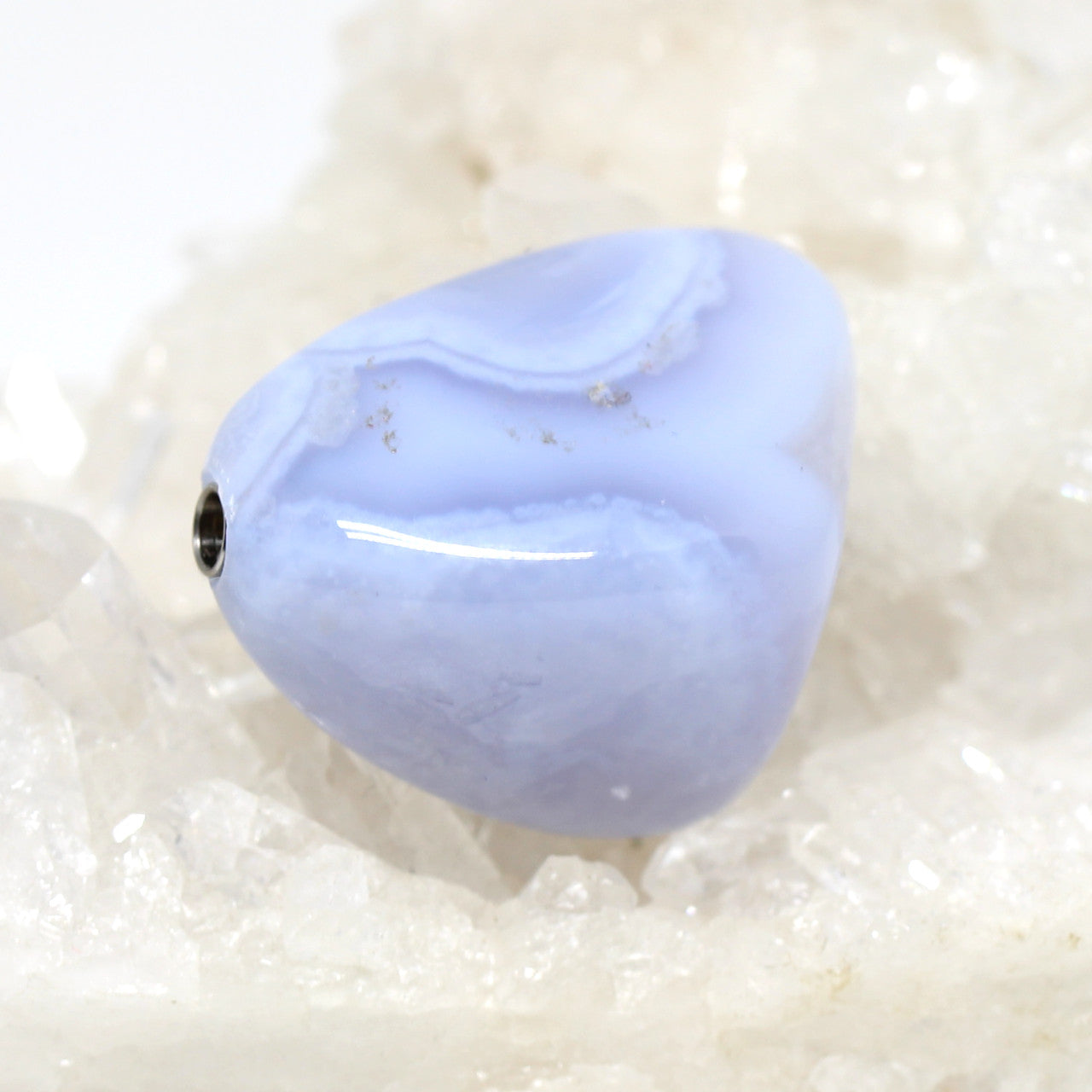 Diese schöne, im pastellton stehende Wechselschließe sieht sehr harmonisch aus. Das wunderschöne blau passt sich sehr vielen Ketten an ohne ihnen die Show zu stehlen. Die Maserung macht den Chalcedon einzigartig und zeigt wieder einmal wie besonders die Natur ist.