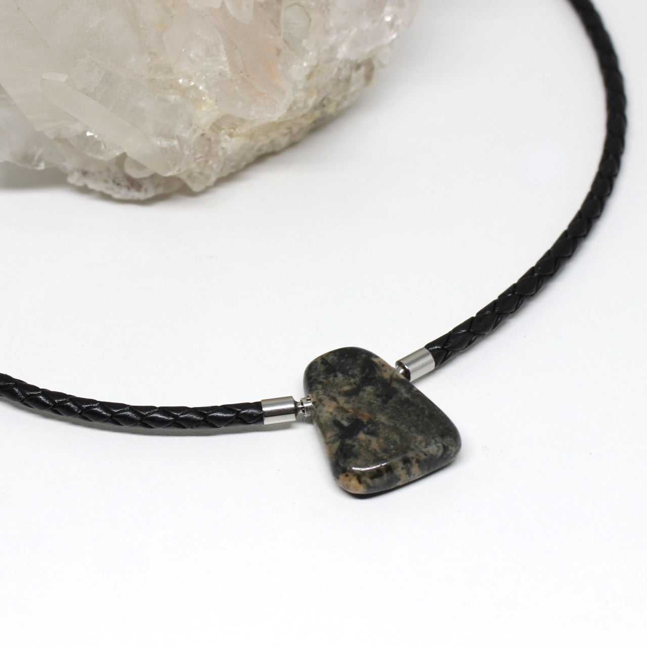 Ein neuer Edelstein in unserem Sortiment. Der Gedrit ist ein aus Schweden stammender Halbedelstein. Er hat eine wunderbare Farbgebung und ein einzigartiges Muster. Der Farbton des Gedrits ist warm und erdig. Er passt ideal zu Kautschuk oder Lederketten, kann aber auch in einer Perlenkette perfekt in Szene gesetzt werden.