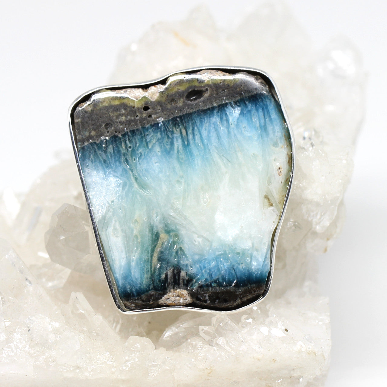 Du fragst dich sicher was es mit dem Namen Blue Ice auf sich hat. Blue Ice entstand als unbeabsichtigtes Nebenprodukt eines industriellen Prozesses oder Schmelzvorgangs und hat eine Härte ähnlich eines Saphirs. Die faszinierende Farbe macht es zu einem echten Eyecatcher. So konnten wir es uns nicht nehmen lassen daraus ein Schmuckstück zu fertigen. Wir haben den Blue Ice in 925er Sterlingsilber eingefasst.