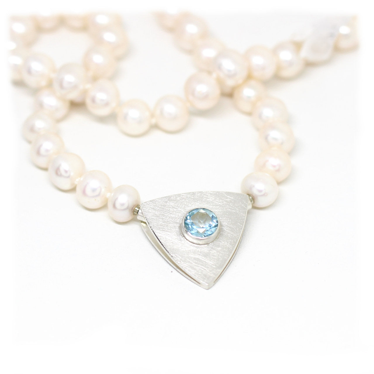 Dieses reizende Schmuckstück stammt aus unserer kleinen Goldschmiede. Mit viel Liebe zum Detail ist diese schöne Wechselschließe entstanden. Das 925er Sterlingsilber hat eine eismattierte Oberfläche, wodurch der facettierte Blautopas noch wertvoller wirkt. Das Zusammenspiel von Silber und Topas ergibt eine aufregende Mischung, da sich die beiden Farben sehr gut ergänzen. Es entsteht ein Schmuckstück der Extraklasse.