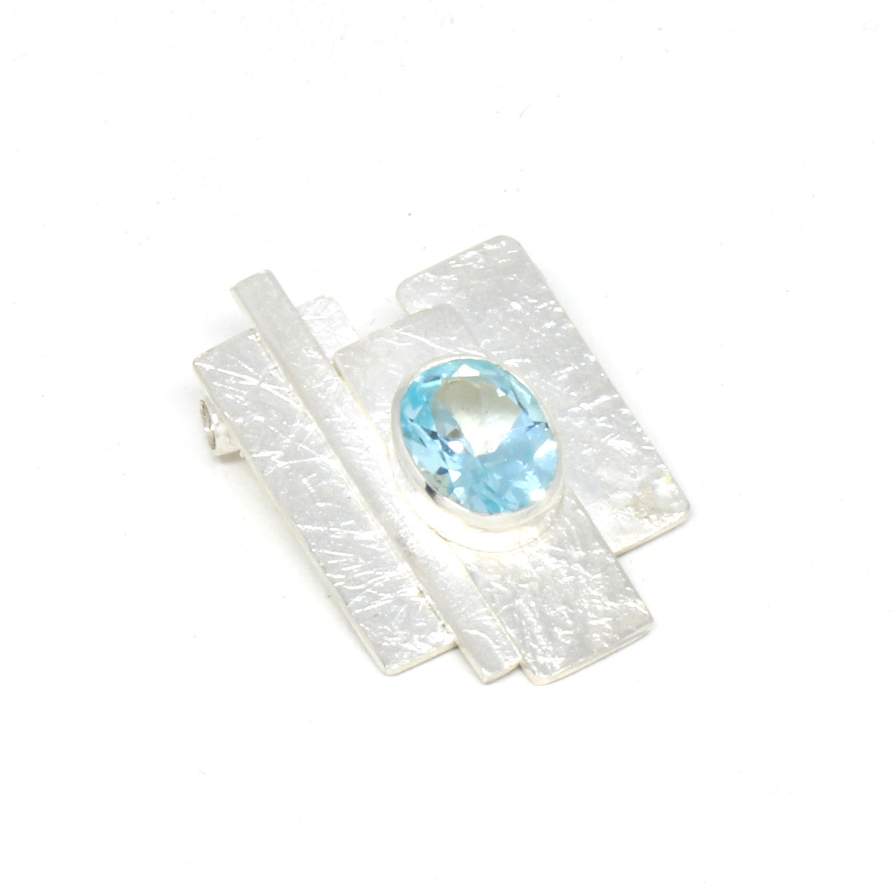 Diese individuelle und sommerliche Wechselschließe haben wir in eigener Werkstatt hergestellt. Sie ist aus 925er Sterlingsilber und mit einer seidenen Oberflächenstruktur bearbeitet. Neben der Struktur ist auch die Form sehr ansprechend, da sie die Kreativität der Handwerkskunst zum Ausdruck bringt. Den sommerlichen und frischen Touch erlangt die Wechselschließe durch den funkelnden, eisblauen Topas. Dieser verleiht ihr einen fast königlichen Hauch von Eleganz.