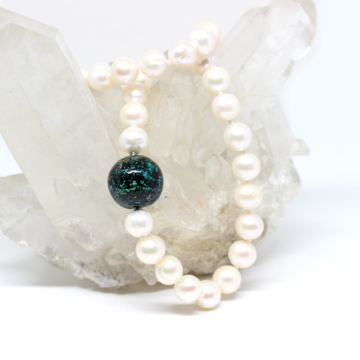 Das Muranoglas trägt seinen Namen von der Insel Murano. Dort werden die Glasperlen in kleinen Werkstätten per Hand hergestellt. Über offener Flamme werden sie mit Blattgold veredelt. Anschließend bekommt die Perle eine letzte Schicht aus Glas. Somit ist das Gold versiegelt und verleiht der Kugel einen Hauch von Luxus. Es handelt sich bei den Perlen um ein spezielles Glas welches nur auf der Insel Murano hergestellt wird. Eben dieses hat die besondere Farbtiefe und Strahlkraft. Diese Leuchtkraft und Qualität unterscheidet Muranoglasperlen von den Perlen anderer Hersteller.