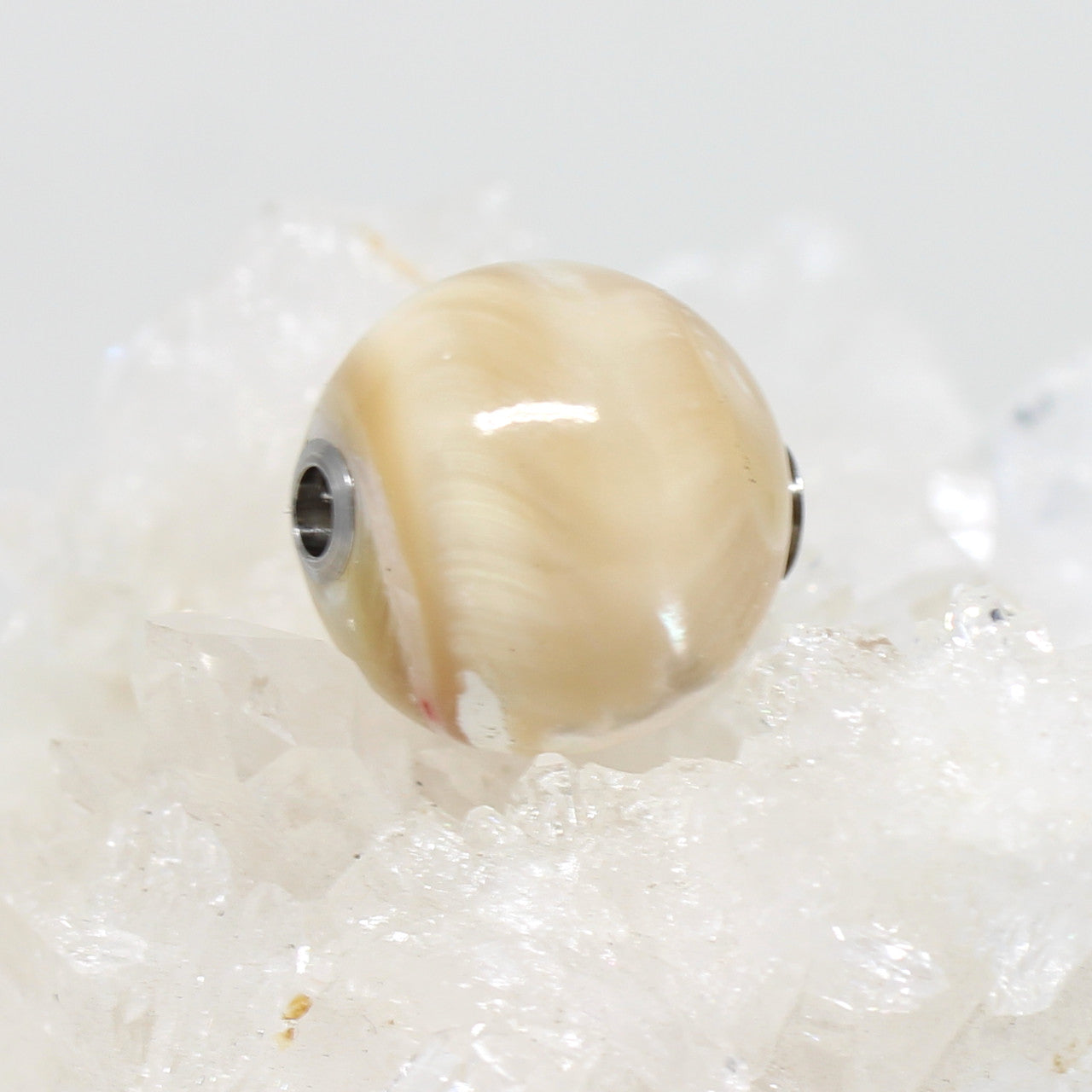 Diese fabelhafte Wechselschließe ist ein wahres Kombinierwunder! Mit ihrem natürlichen Farbton passt sich die Perlmuttkugel zu jeglichen Ketten und Adaptern perfekt an.