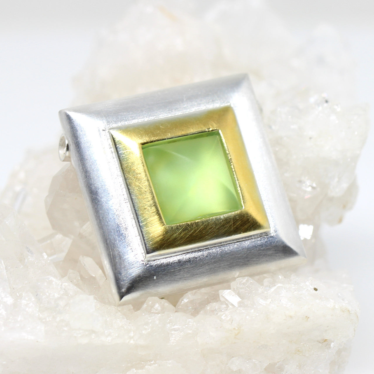 So kann der Frühling kommen! Diese hochwertige Wechselschließe vermittelt Frische und Klarheit. Die geradlinige Form in Kombination mit dem grünen Stein harmonieren ideal. Du kannst allerlei Wechselketten super variieren und auch Goldschmuck passt gut dazu, da wir einen kleinen Teil der Schließe vergoldet haben.