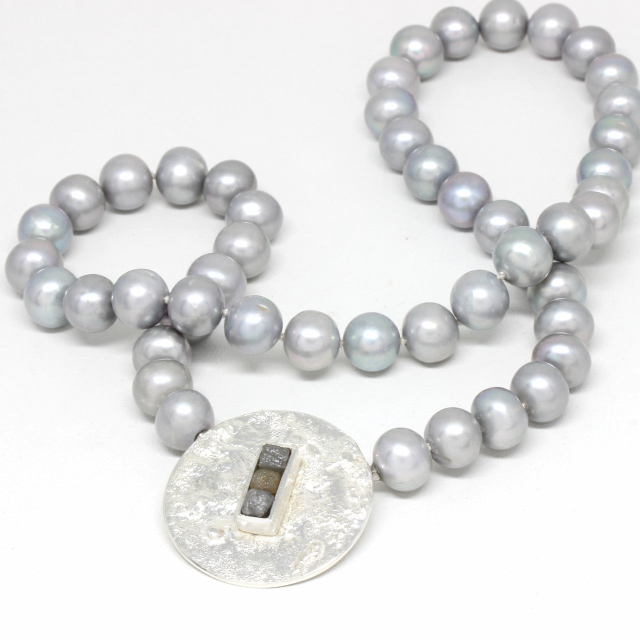 Diese stylische Wechselschließe ist neu in unserem Sortiment. Es handelt sich bei diesem Schmuckstück um handgefertigtes Modell. Die kreative Oberflächenstruktur zeigt auf den ersten Blick unseren persönlichen Bearbeitungsstil von Schmuckwiedu. Wir haben die Schließe aus 925er Sterlingsilber geschmiedet und poliert. Als besonderes Merkmal haben wir drei Rohdiamante einfließen lassen, welche dem Schmuckstück einen exklusiven Touch verleihen. Die Edelsteine sind unbehandelt und haben daher eine matte Oberfläche. Diese vereint mit dem strahlenden Sterlingsilber verwandelt diese Wechselschließe in ein extravagantes Schmuckelement.