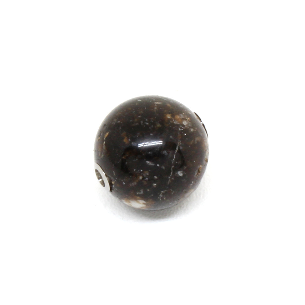 Die Jaspiskugel verarbeitet als Wechselschließe passt fantastisch zu allen Erdtönen. Ihre Farbvielfalt lässt einen immer wieder staunen und regt die Fantasie an. Bei diesem schönen Schmuckstück überwiegt schwarz, doch bei genauerem betrachten erkennt man braune Akzente. Je nach Lichteinfall schillern in dem schwarz feine Erdtöne, die ihn zu etwas ganz besonderem machen. Eine super Wechselschließe die vor allem in hellen Ketten zur Geltung kommt.