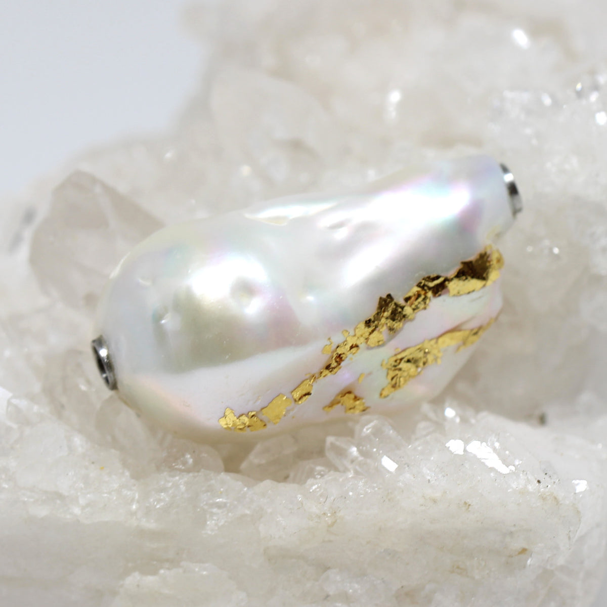 Traumhafte Barockperle mit atemberaubendem Lüster. Die schillernden Farben harmonieren ideal mit jedem Hauttyp und passen auch zu jeder Art der Wechselkette. Mit einer Perle liegt man immer richtig; ob elegant oder sportlich, sie ist der perfekte Begleiter. Dieses Stück haben wir mit Blattgold verziert.