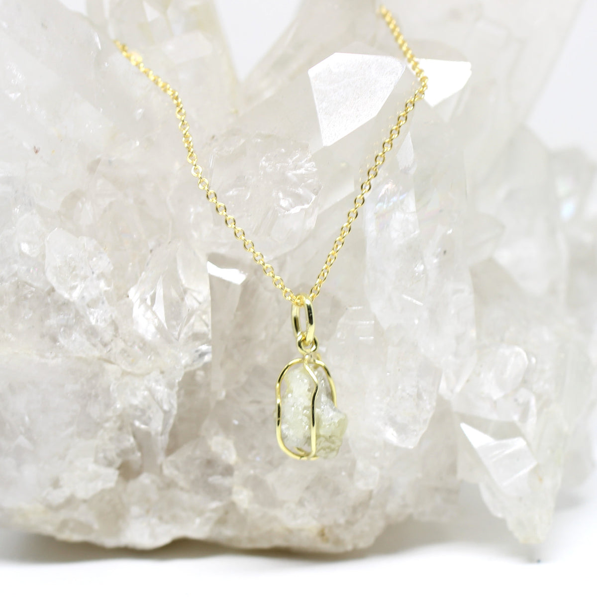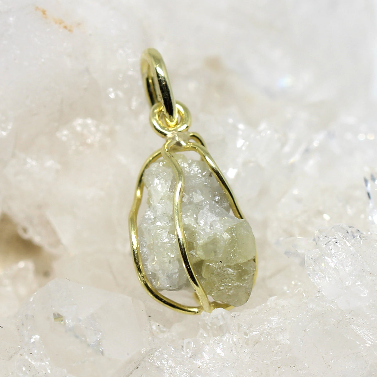 Sie lieben Edelsteine und hochwertges Gelbgold? Mit diesem Anhänger erfüllen wir beide Kriterien. Im Fokus des Schmuckstückes steht ein Rohdiamant der völlig ungeschliffen ist. Es ist deutlich die Natürlichkeit des Edelsteines zu sehen. Eingefasst haben wir das Schmuckstück in 585er Gelbgold.