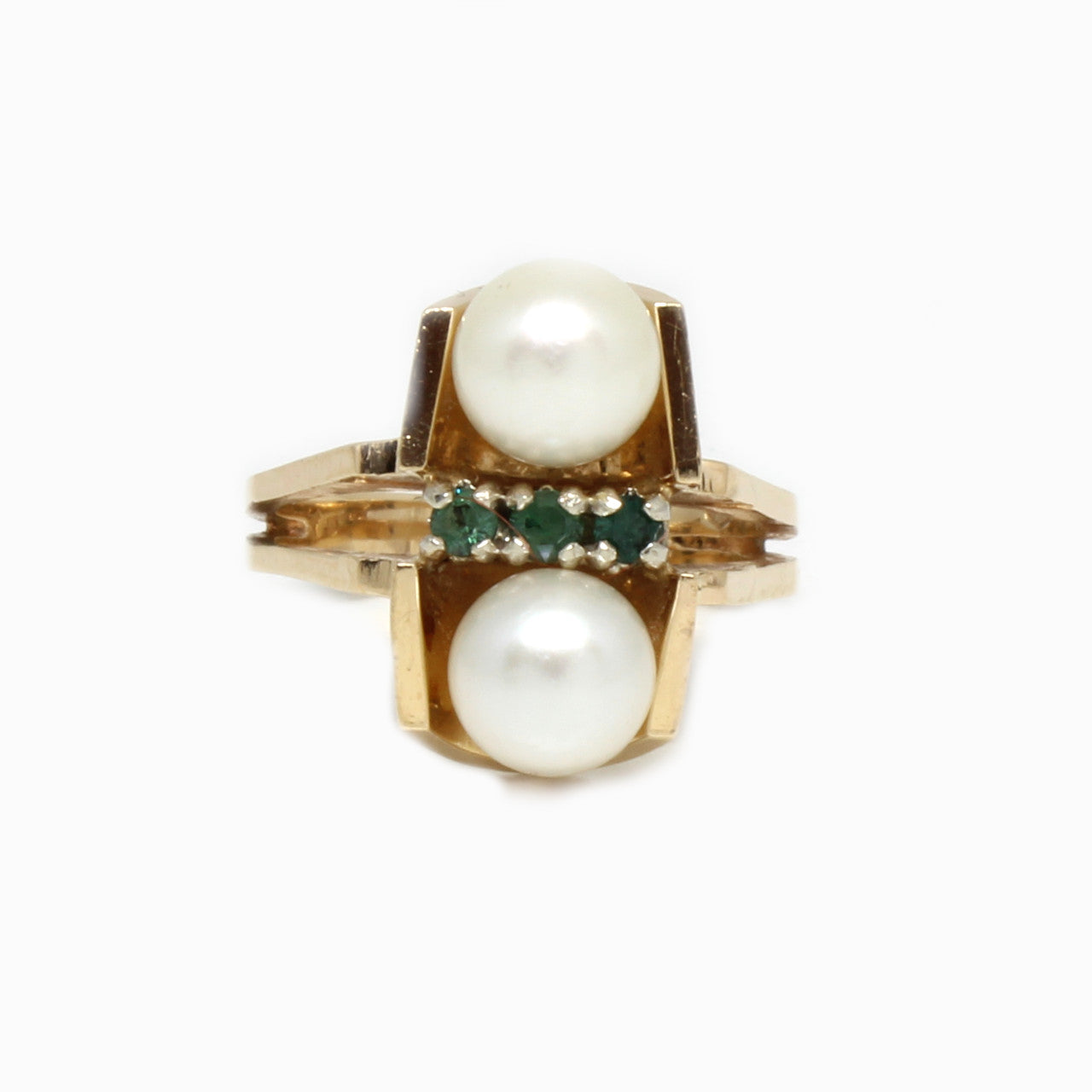 Ring in 585 Gelbgold mit Perle und Smaragd Größe 51