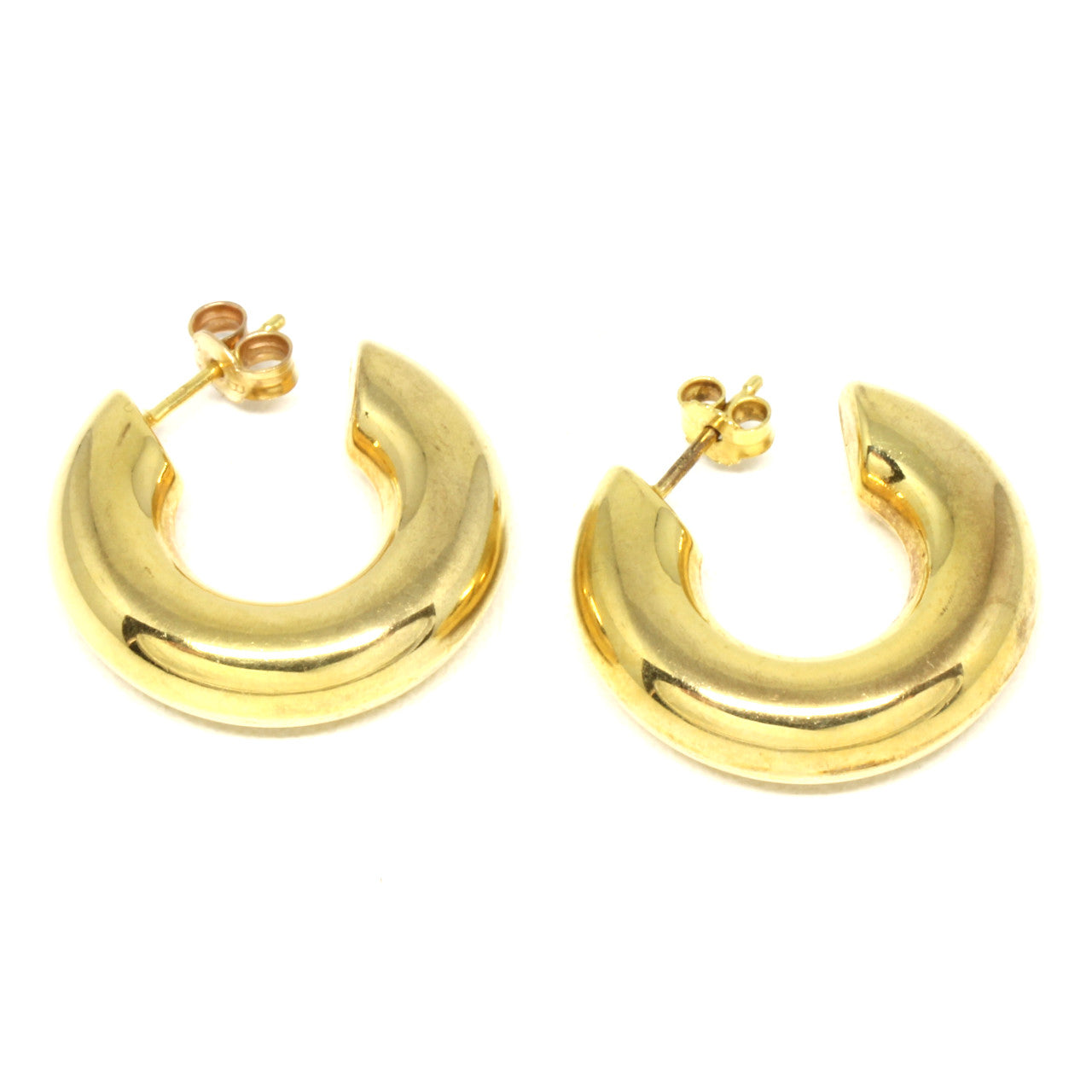 Dieser Ohrschmuck ist ein Klassiker und passt immer! Die Creolen sind in 375er Gelbgold hergestellt und poliert. Als Verschluss wurde ein Stecker angebracht, was die Ohrringe gut am Ohr sitzen lässt. Zudem sind sie nicht massiv und verhindern somit ein unangenehmes Tragegefühl.