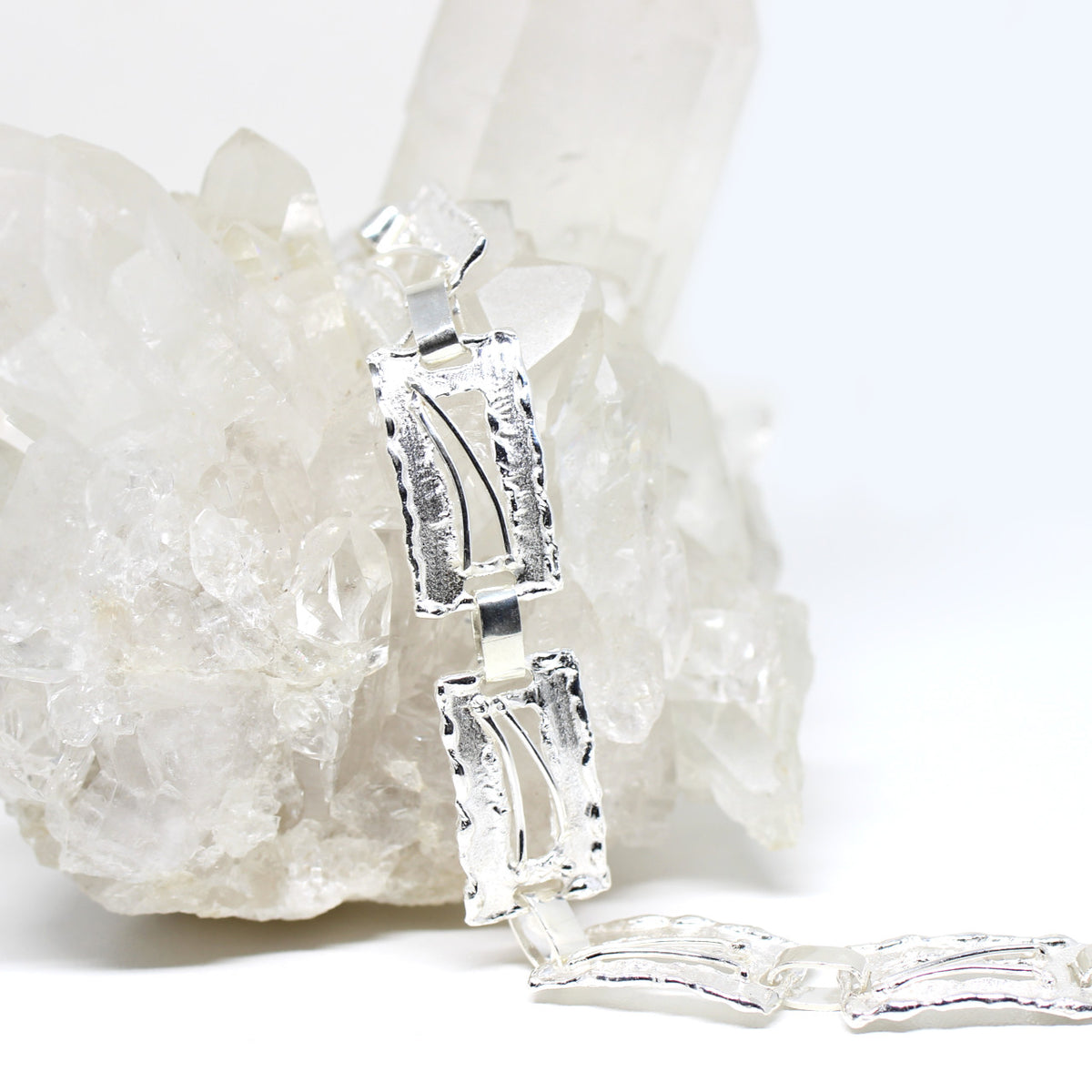 Dieses individuelle Schmuckstück ist mit viel Liebe zum Detail in unserer Werkstatt entwickelt worden. Jedes einzelne Glied und die dazugehörige Öse wurde von Hand angefertigt. Bei diesem Armband ist keinerlei Standard zu erkennen. Es ist durch und durch ein Armschmuck der sich von Gewöhnlichkeit abhebt. Die Teile sind mit unserer speziellen Technik bearbeitet und wurden anschließend poliert.