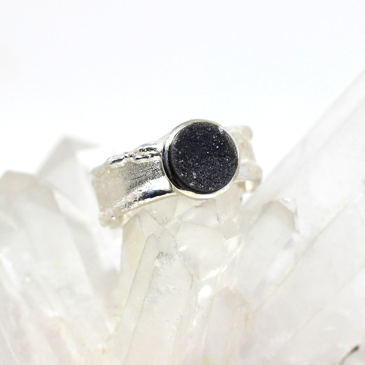 Dieses schöne Modell kommt gerade aus unserer Werkstatt. Mit der speziellen Struktur kommt die Handwerkskunst gut zur Geltung und hebt sich vom Standard hervor. Ein funkelnder, pechschwarzer Onyxkristall rundet das Schmuckstück ab. Gefertigt ist der Ring aus 925er Sterlingsilber.
