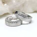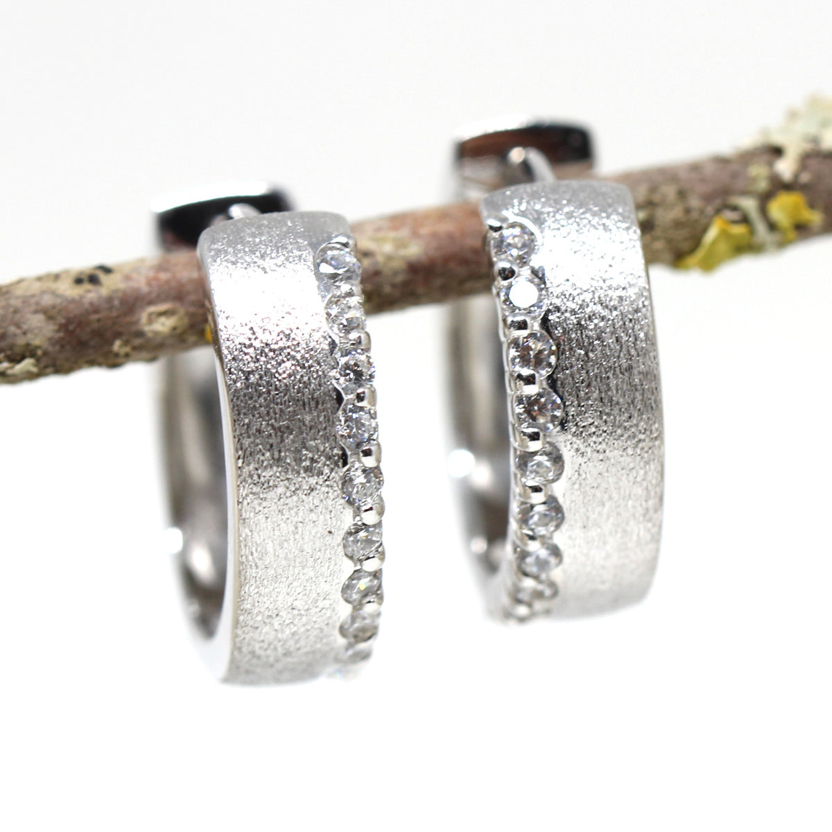 Diese ausdrucksstarken Creolen sind aus 925er Sterlingsilber und rhodiniert. Die Oberfläche der Ohrringe ist in einer derben Mattierung gestaltet. Durch das Scharniergelenk und den Clickverschluß leicht zu benutzen.