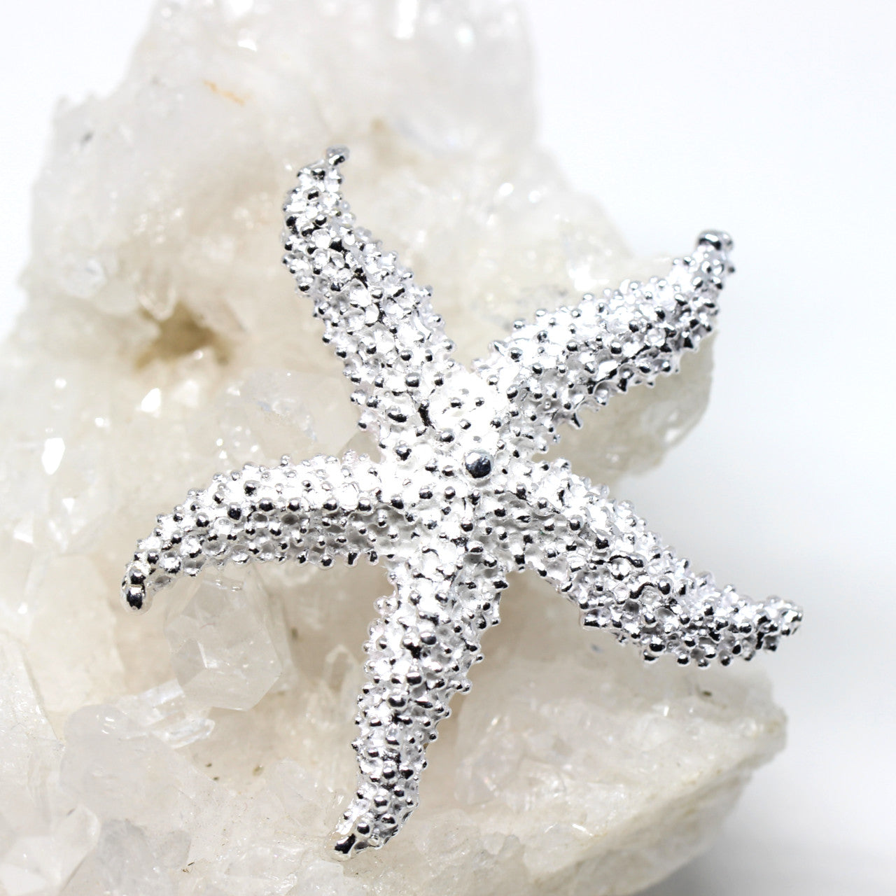 Der Seestern ist aus 925er Sterlingsilber hergestellt. Die Struktur besteht aus vielen kleinen Kugeln. Kombinierst du dieses tolle Schmuckstück mit einer Aquamarin-, Kautschuk- oder Perlenkettekette trägst du immer ein Teil vom Meer bei dir. Das Tolle an dem Wechselverschluss ist zudem, dass die Form nicht eine symmetrische, exakte ist und künstlich perfektioniert wurde, sondern die eines natürlichen Seesterns gleicht.
