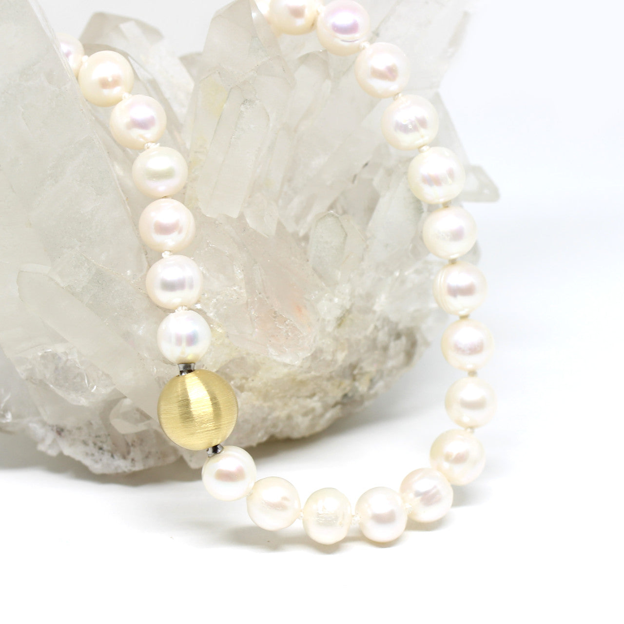 Dieses schöne Schmuckstück ist der perfekte Start in die Welt des Wechselsystems. Es handelt sich dabei um ein Set das aus einer weißen Perlenkette und einer vergoldeten Edelstahlkugel besteht. Diese beiden Elemente eignen sich super als Startset, da sie sich hervorragend kombinieren lassen. Vor allem die Kugel harmoniert gut mit Adaptern und bietet somit eine gute Grundlage in diesem Bereich.