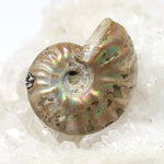 Der Ammonit zählt zu einem der begehrtesten Wechselschließen. Vor allen Dingen der Regenbogenammonit ist mit seiner speziellen Schattierung sehr begehrt. Jede dieser Wechselschließen ist ein absolutes Unikat. Der Regenbogenammonit bekommt seine besondere Optik durch Verwachsungen mit Perlmutt. Charakteristisch ist auch die nicht immer gleichmäßige Oberfläche des Ammonites. Zusammen verbindet sich alles zu einem harmonischen Gesamtbild welches zu beinahe jeder Wechselkette perfekt passt.
