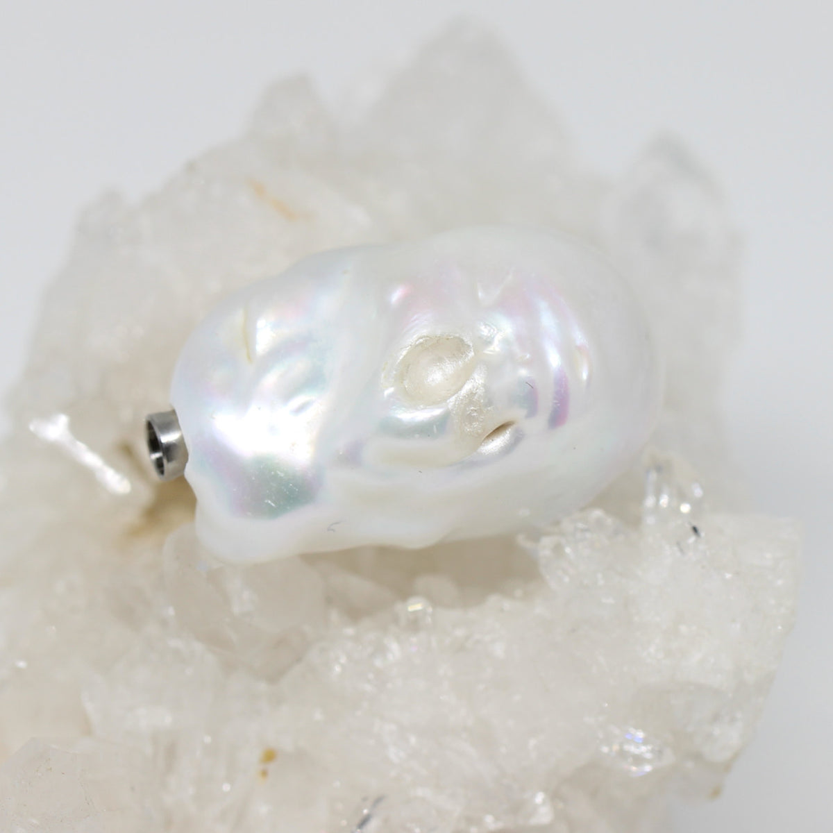 Diese weiße, schillernde Süßwasserperle ist außergewöhnlich in Ihrer Gestalt und Farbe. Ein Kunstwerk der Natur mit tollem Lüster. Ihre barocke Form sieht auch in einem Kautschuk getragen sehr schön und sportlich aus.