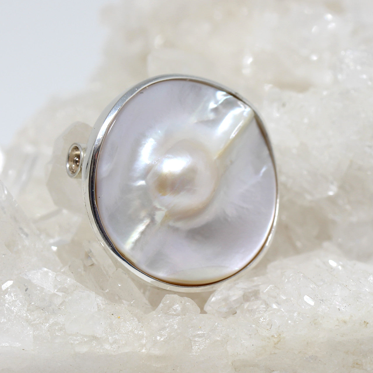 Tolles Schmuckstück das zu allen Outfits perfekt getragen werden kann. Die Mabeperle ist generell ein sehr beliebtes Schmuckelement. Wir haben die Schließe schlicht gehalten und aus 925er Sterlingsilber hergestellt.